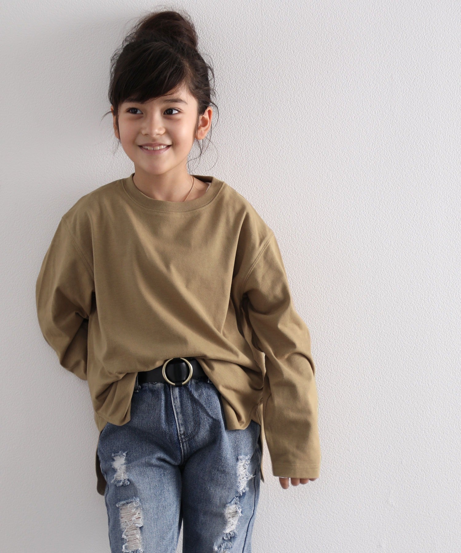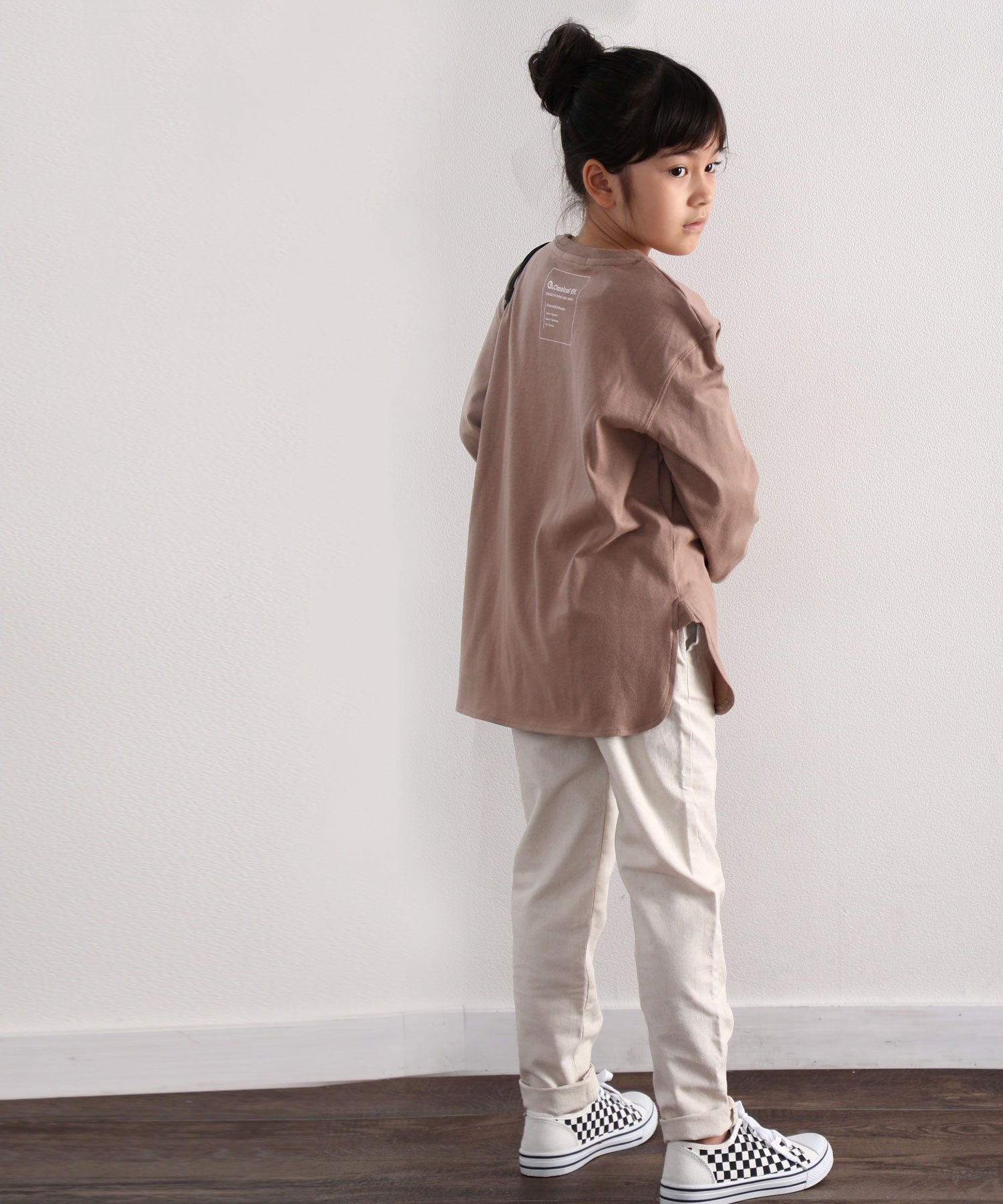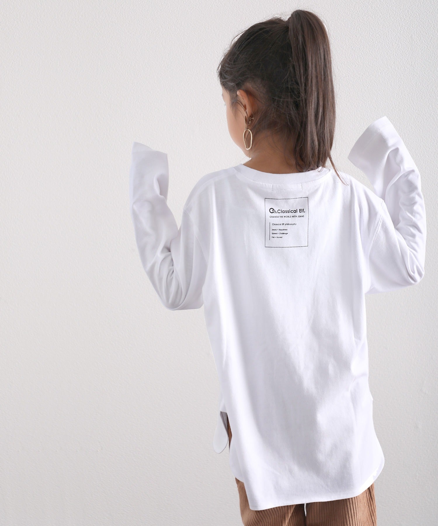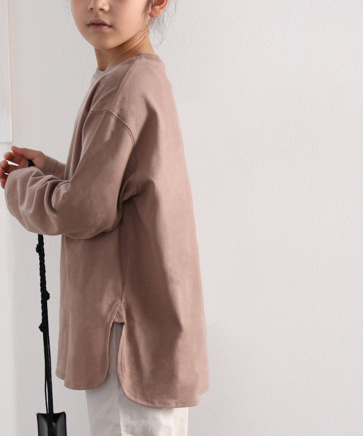 【family+】【親子コーデ】キッズ サイドスリットロング丈ビッグシルエット無地バックプリントロングTシャツ(長袖) kclkp-039