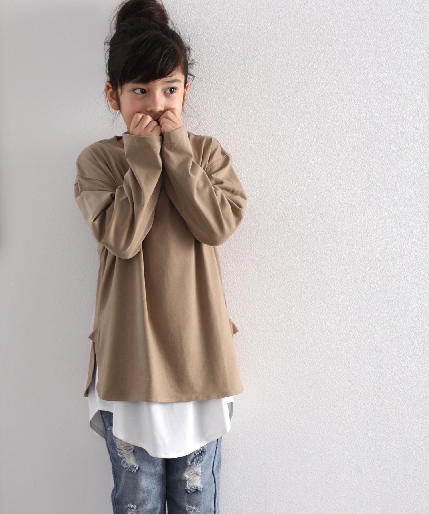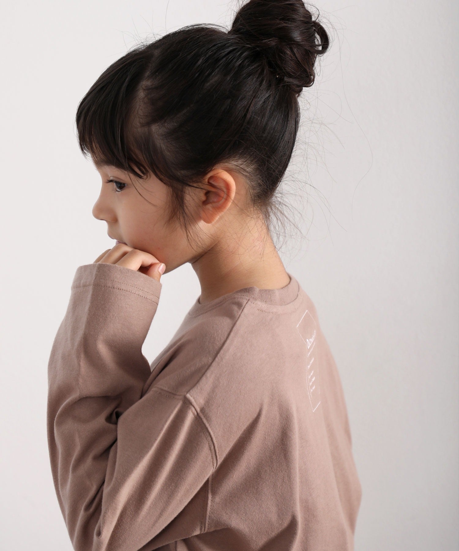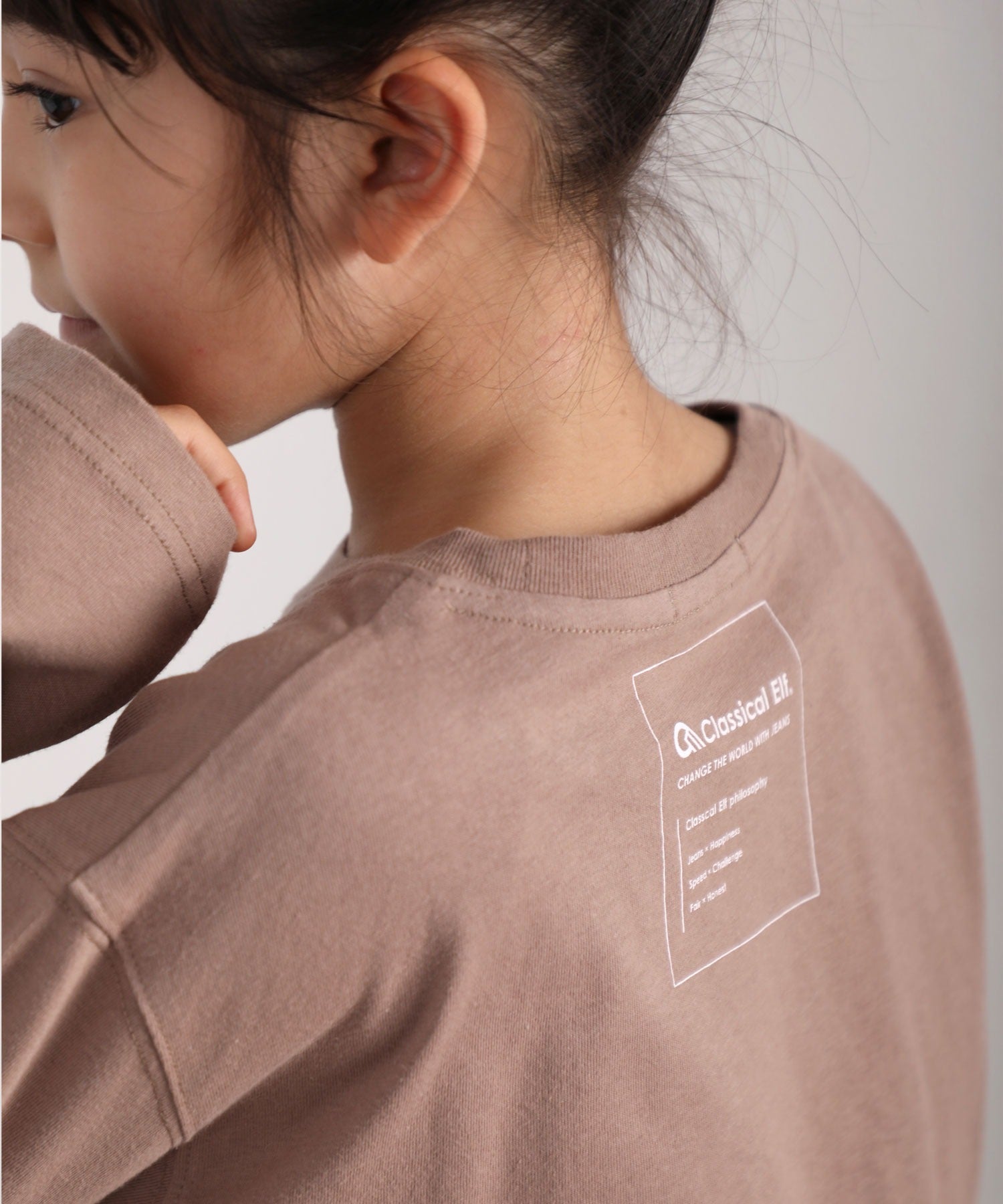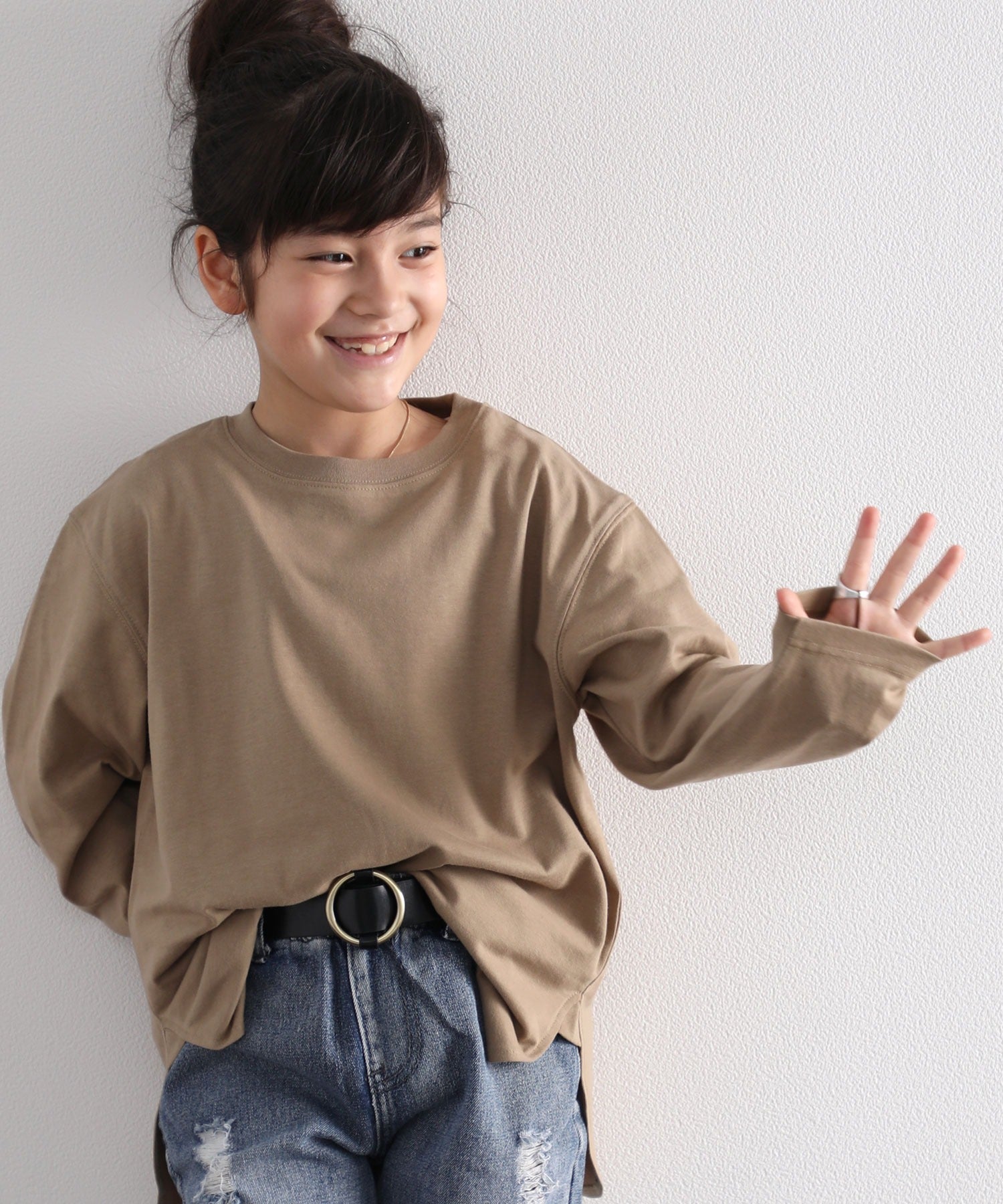 【family+】【親子コーデ】キッズ サイドスリットロング丈ビッグシルエット無地バックプリントロングTシャツ(長袖) kclkp-039