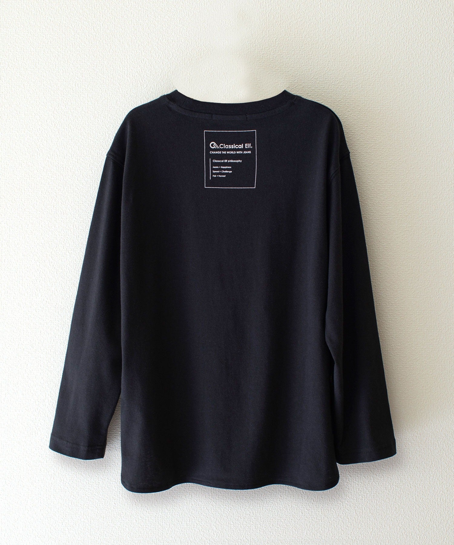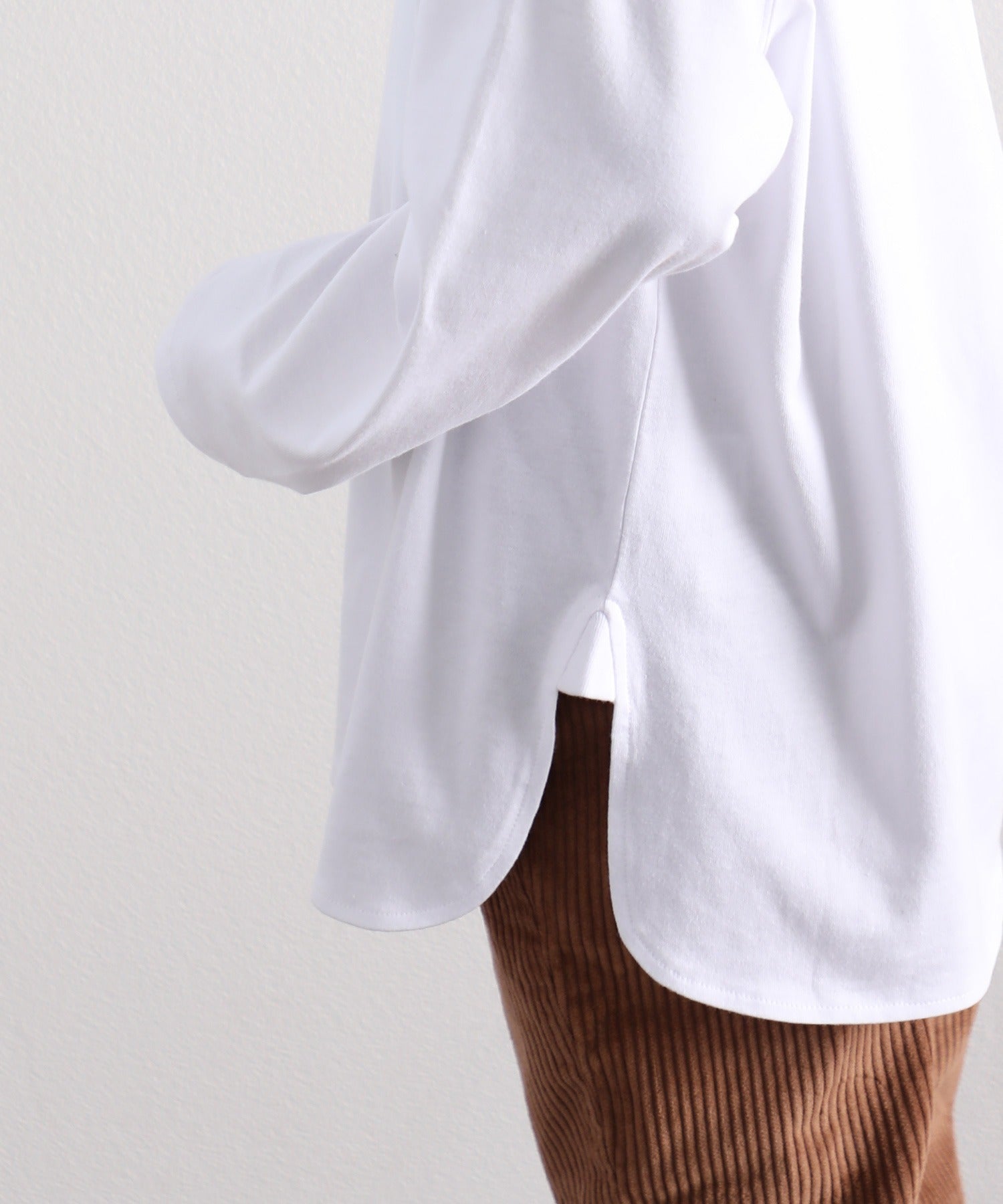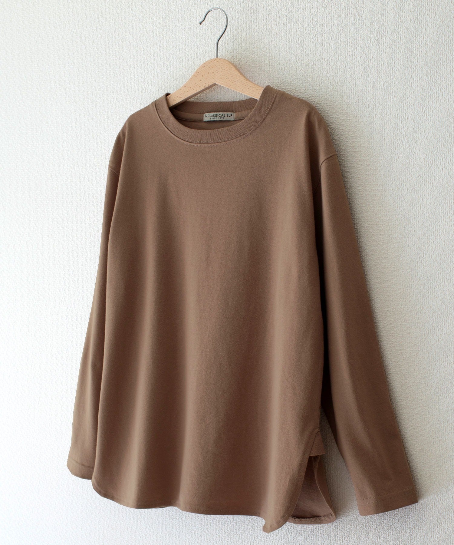 袖はややドルマン気味になっており、シンプルながらもデザイン性の高いロンTです。