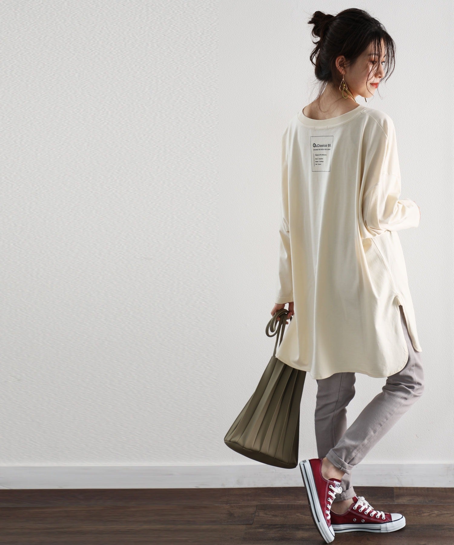 サイドがスッキリして見えるので、ゆるっとしていてももったりした印象になりません。