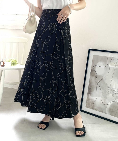 【mily bilet】大人魅せ。美形花柄タックフレアスカート mi0959002