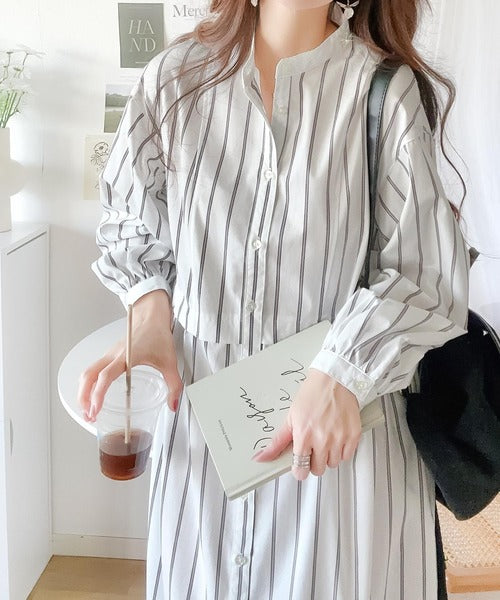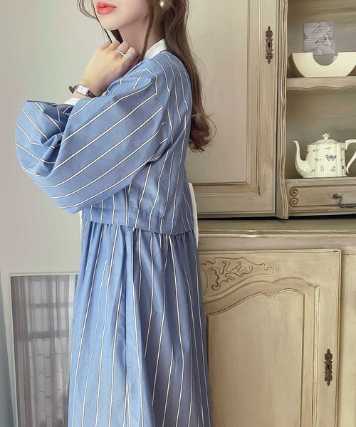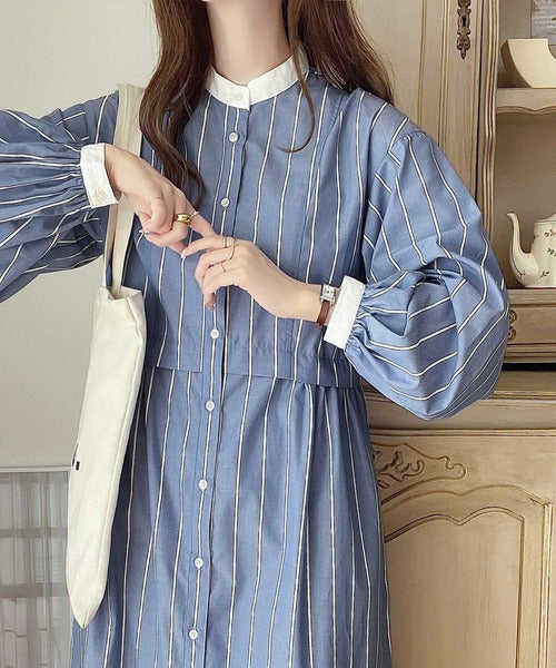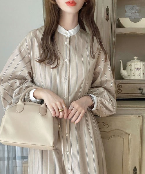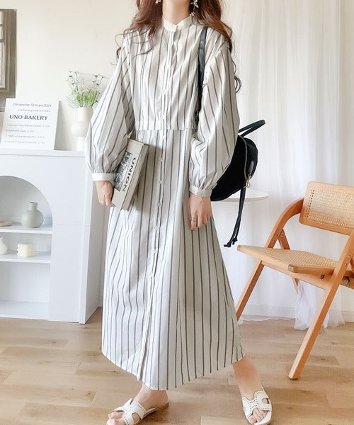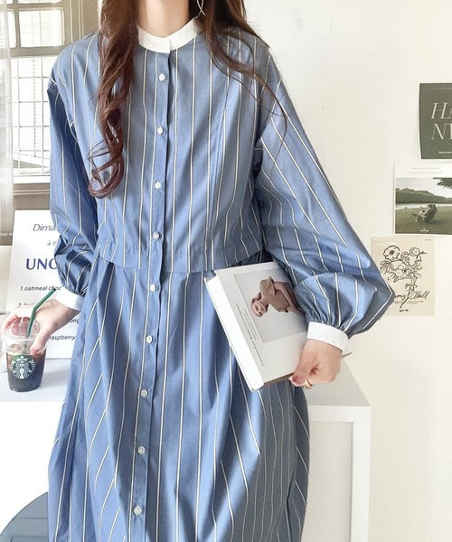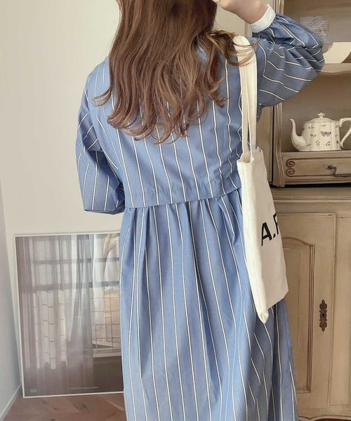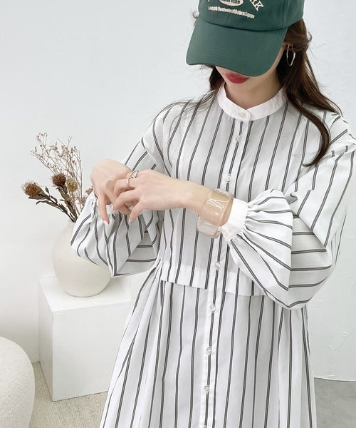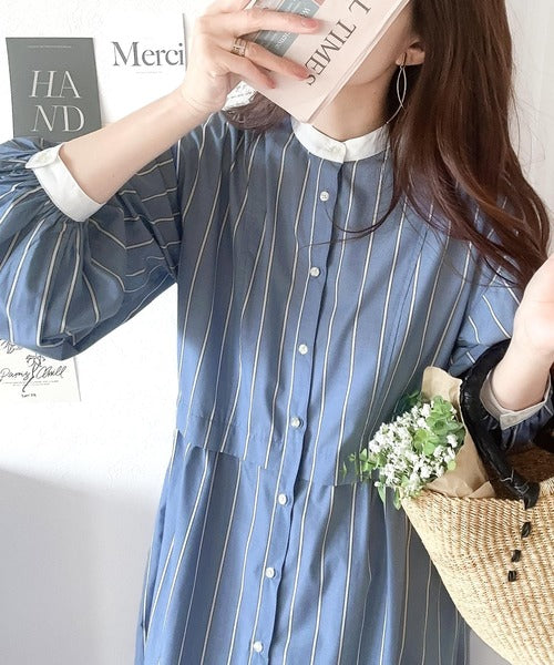 【mily bilet】1枚で主役級。マルチストライプクレリックシャツワンピース mi0959003