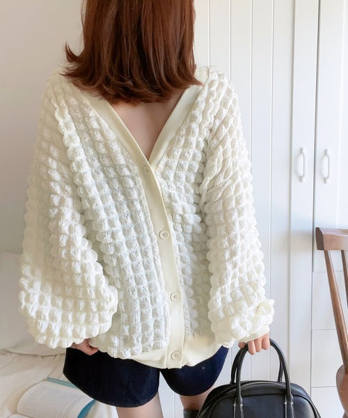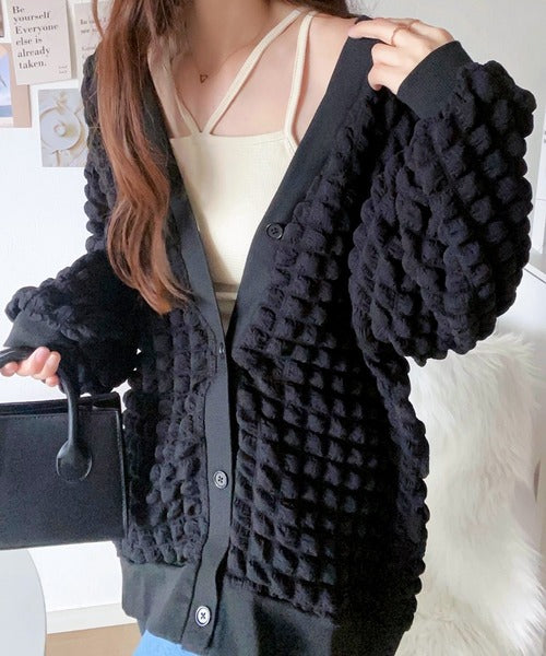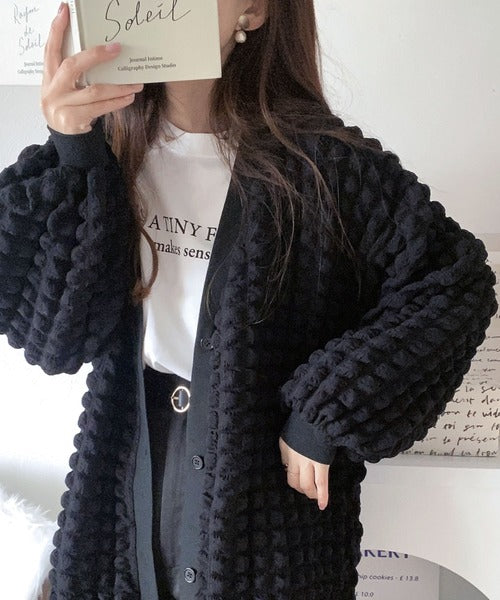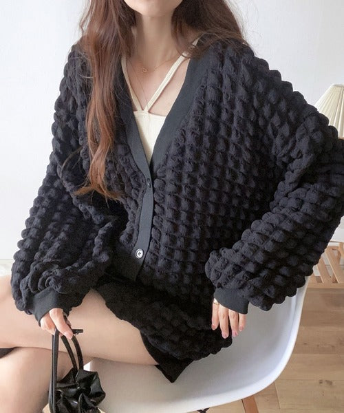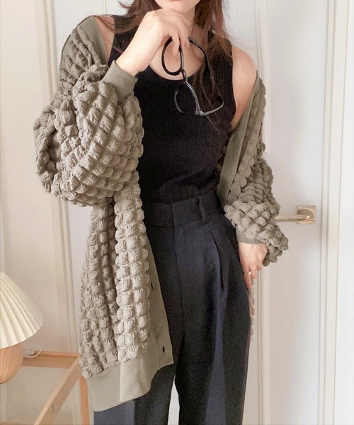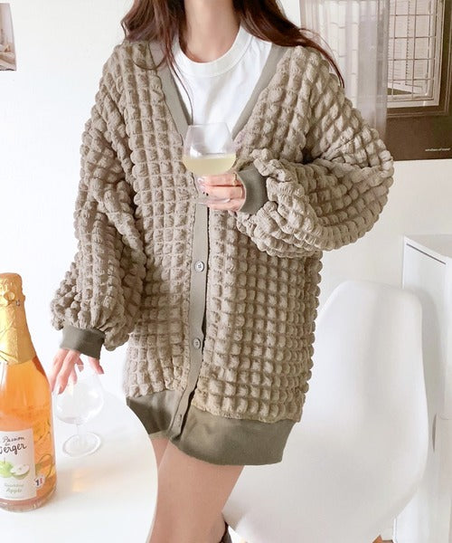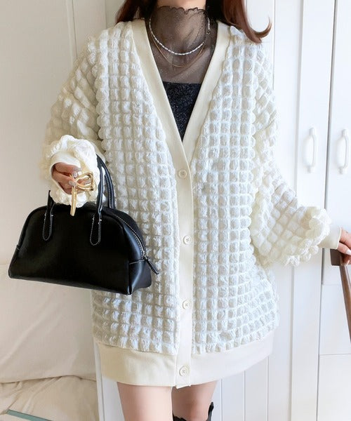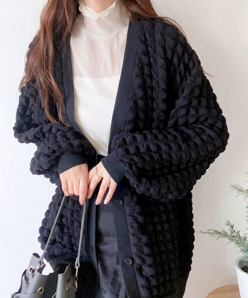 【mily bilet】ゆるっとしたシルエットが可愛い ぽこぽこ2wayカーディガン mi1019011