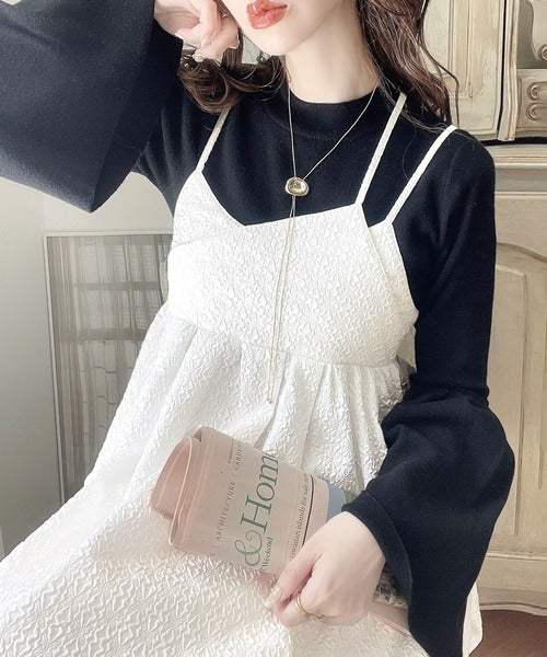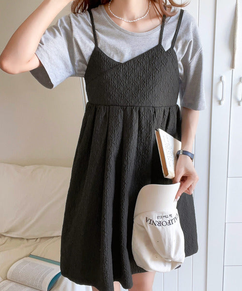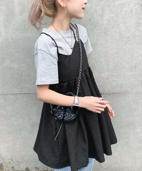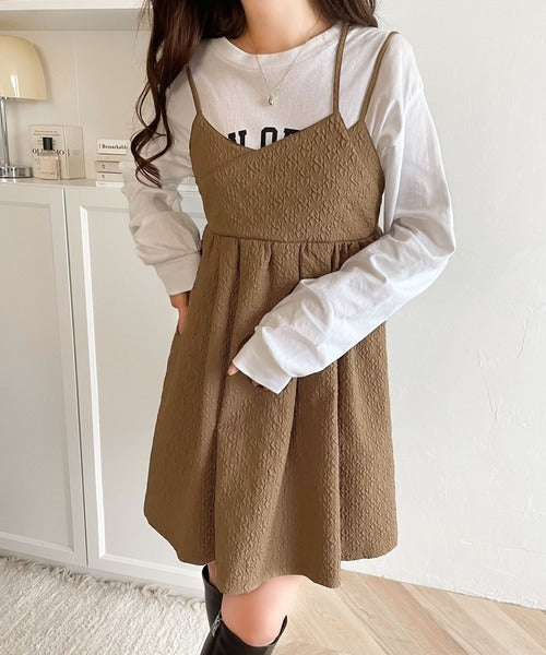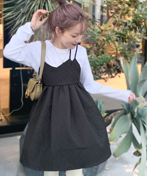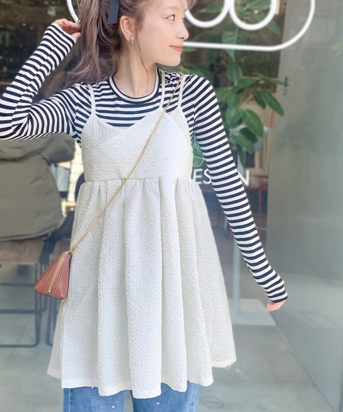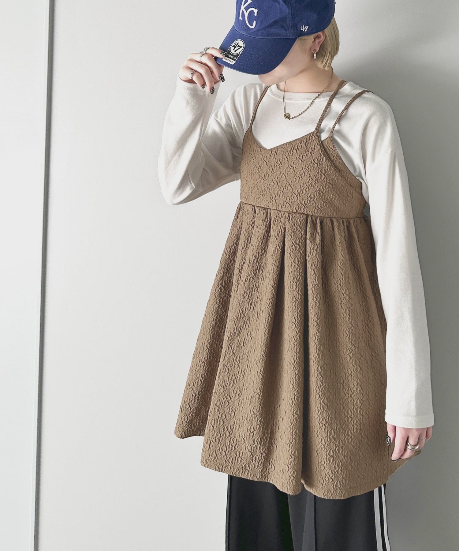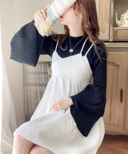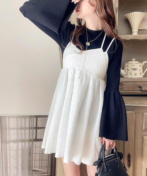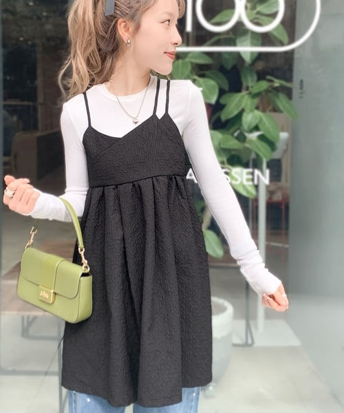 【mily bilet】フェミニンな後ろ姿で魅せる。エンボスジャガード レイヤードキャミ ミニワンピ mi1019012