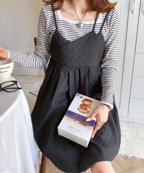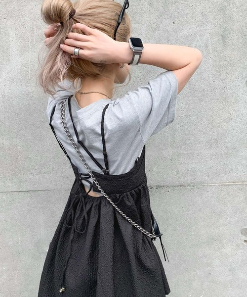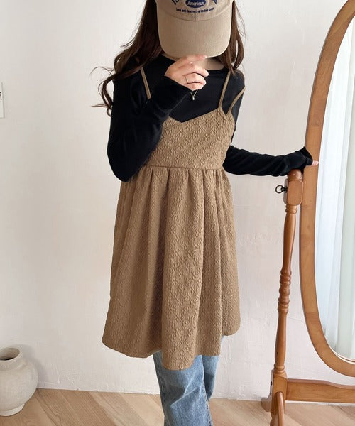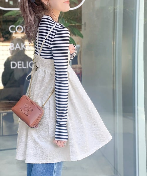 肩紐は調節機能付きなので、ワンピースとして単品で着てもインナーと合わせてもお好みの長さに調節できます。