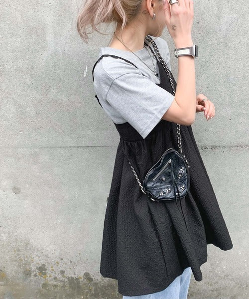 後ろ姿まで抜かりなくお洒落見えするバックレースアップや、胸元のアシメデザインも魅力。