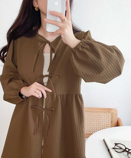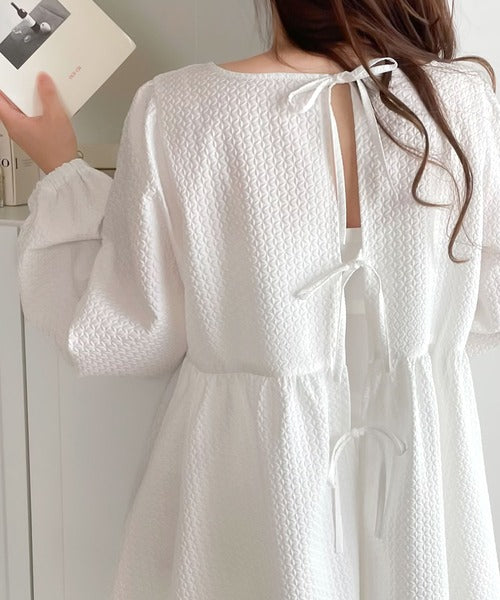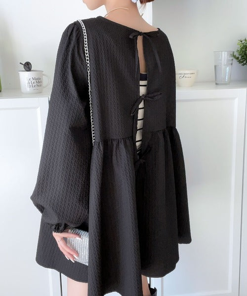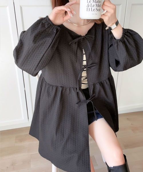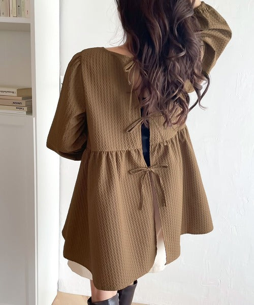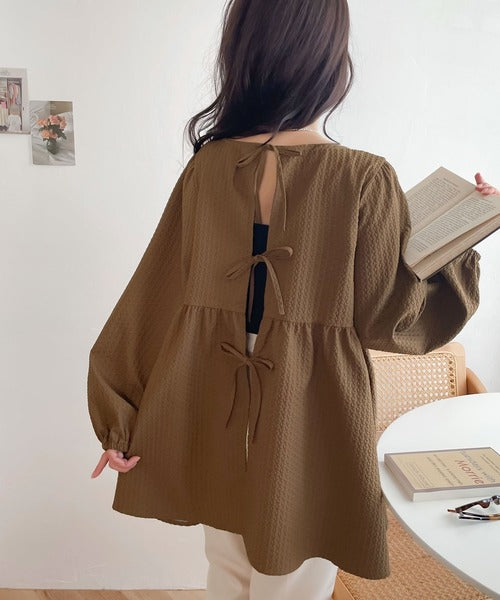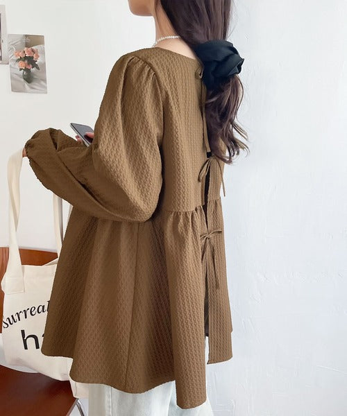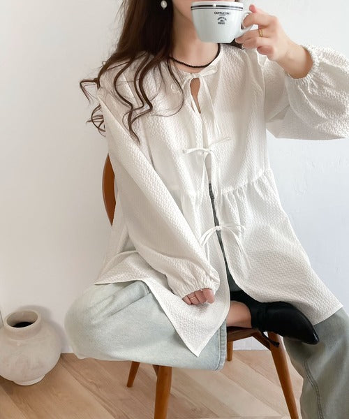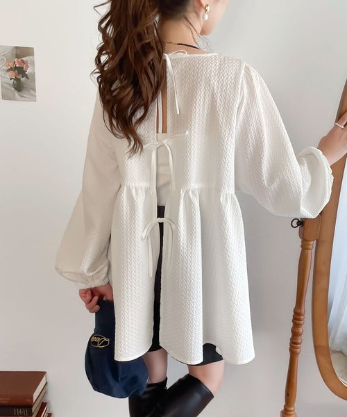 【mily bilet】ほんのりガーリー。エンボスジャガード前後2WAYリボンブラウス mi1019013