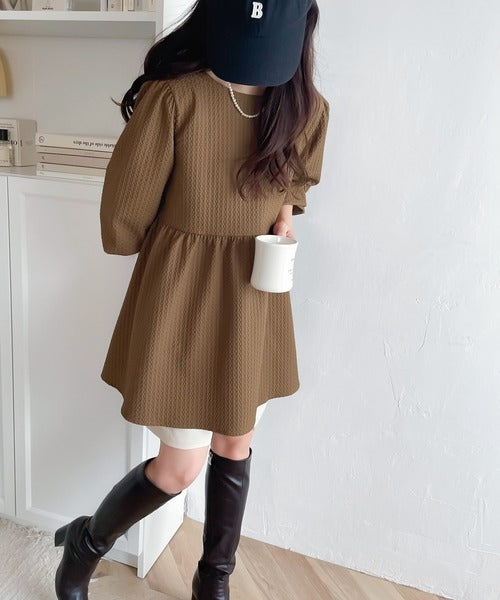 立体感あるフレアーシルエットにこだわったペプラムデザインは