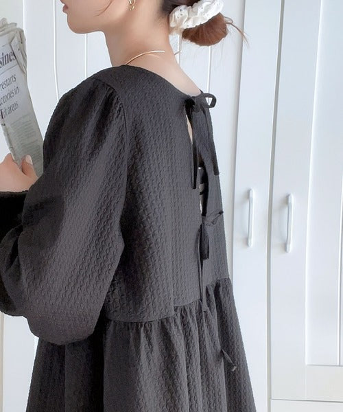 背中のバックリボンが女性らしさを演出できるのがポイント。