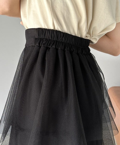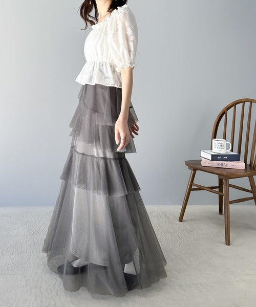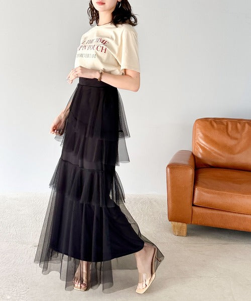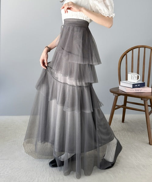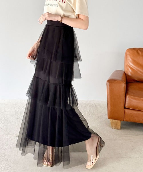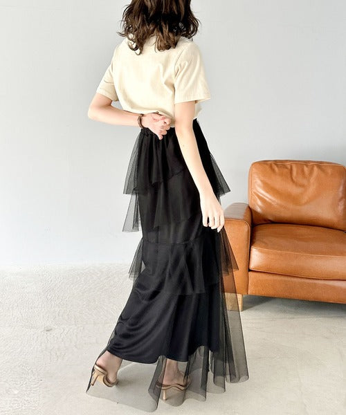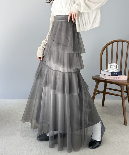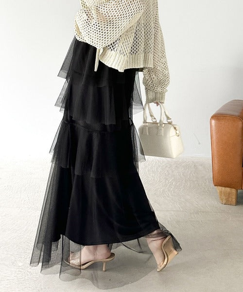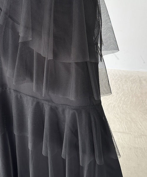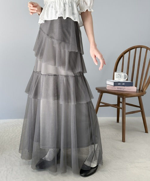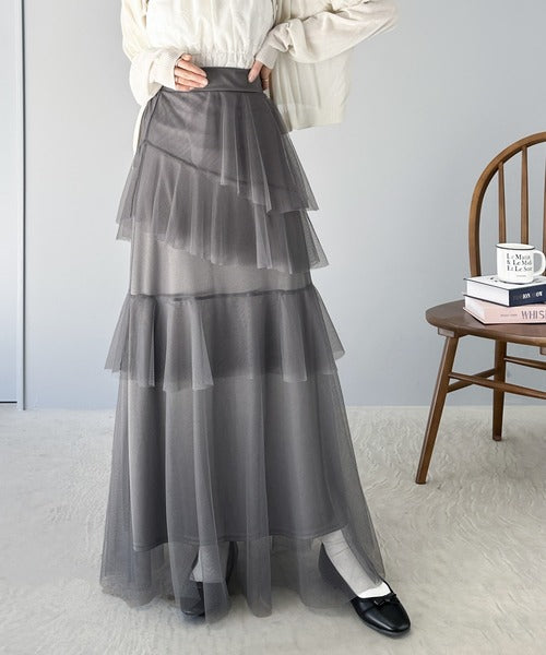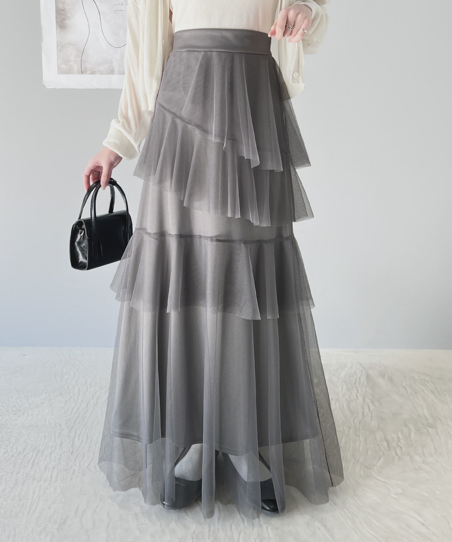 【mily bilet】1枚で華やぐ。アシメトリーフリルチュールスカート mi1019033