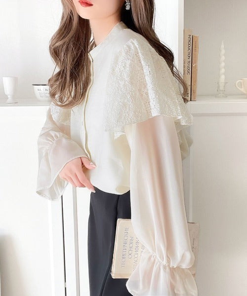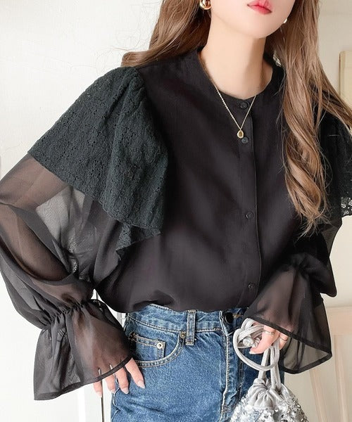 【mily bilet】1枚で華やぐ!レースフリル使いシアーキャンディースリーブブラウス mi1019039