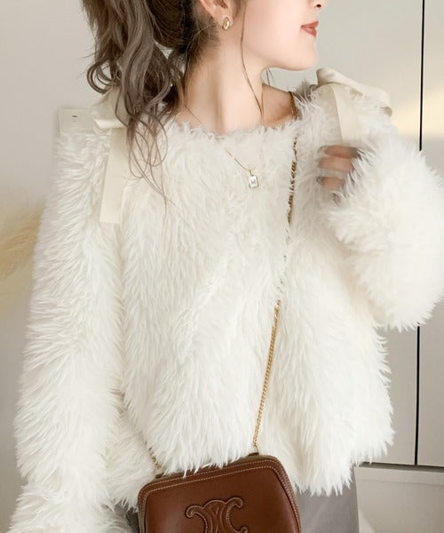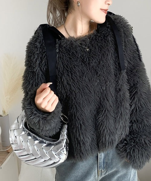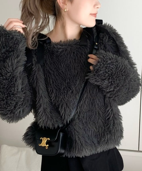 今季トレンドの毛足の長いふんわりとしたファー素材を使用したプルオーバー。