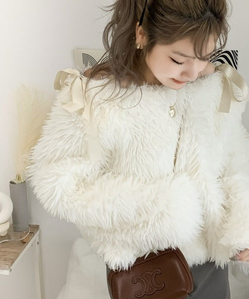 【mily bilet】冬の華やかトップス。オフショル2WAY肩リボンファートップス mi1019064