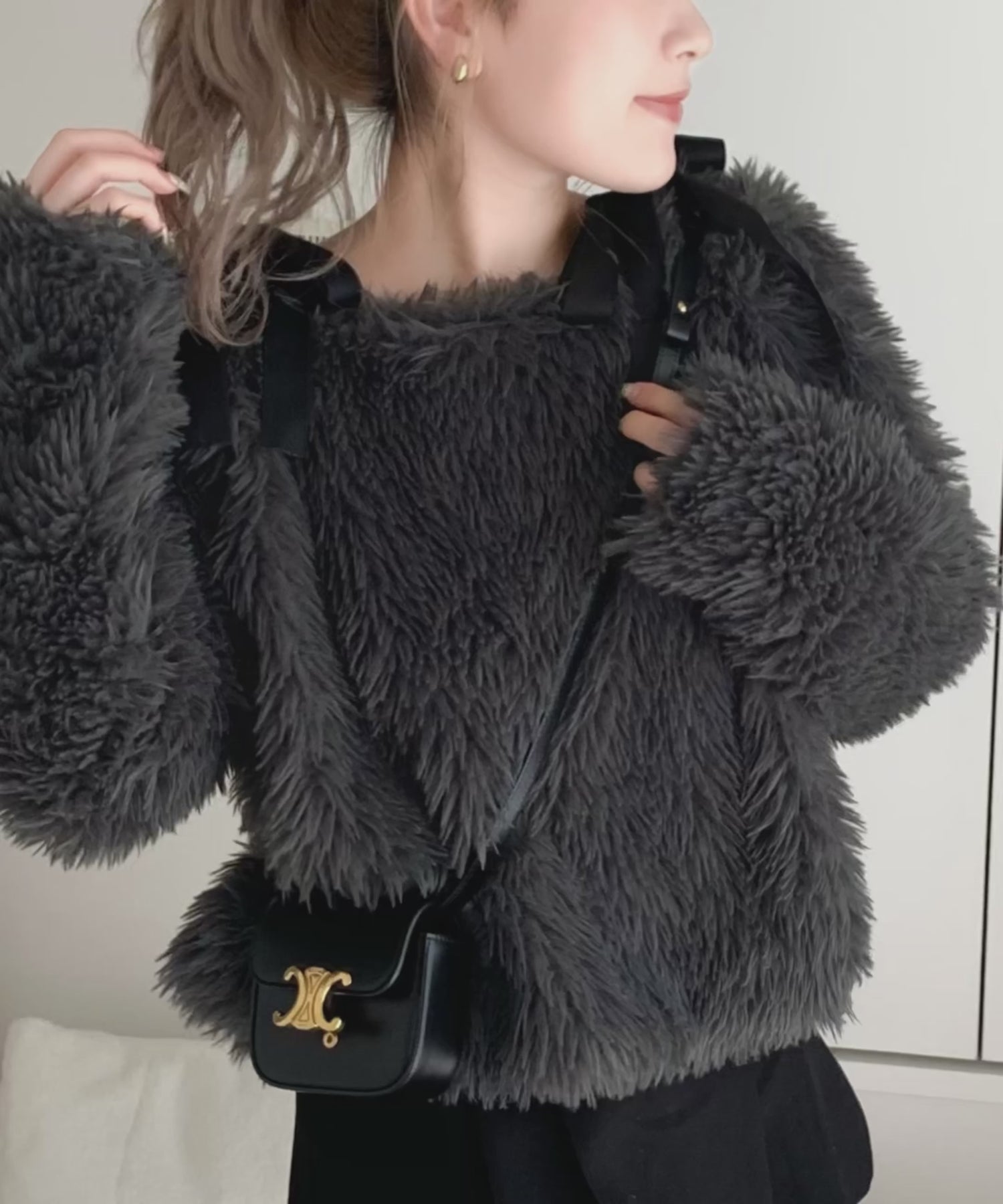 ふわっとした毛足の長いファー素材。