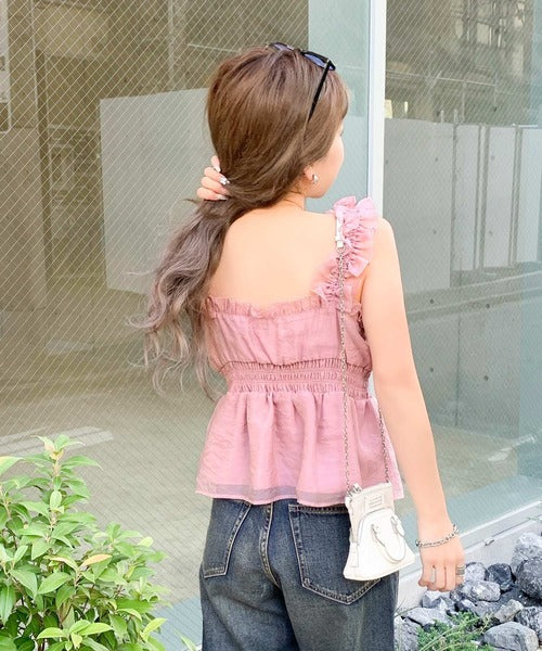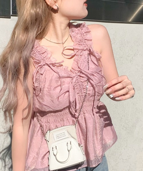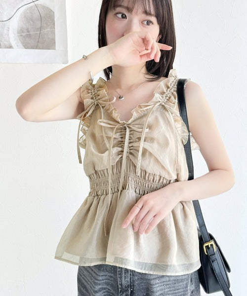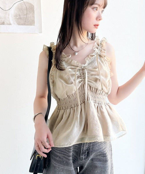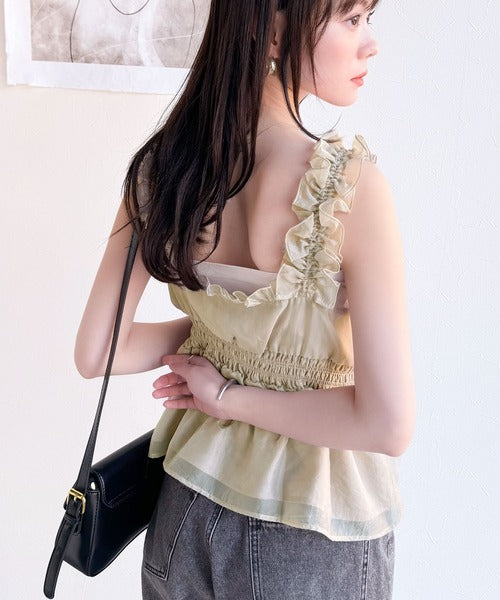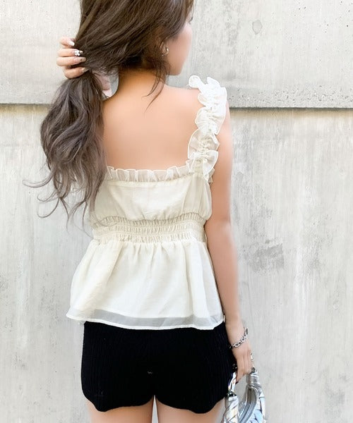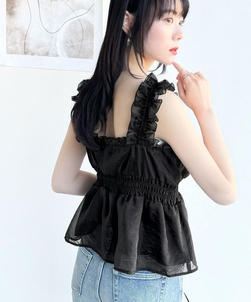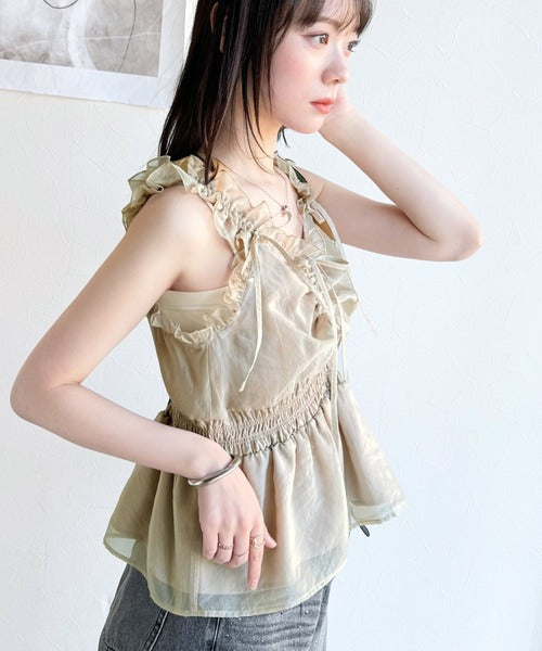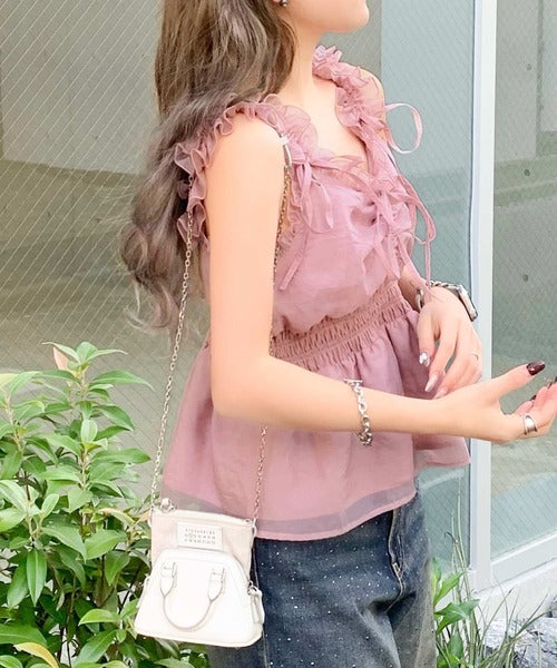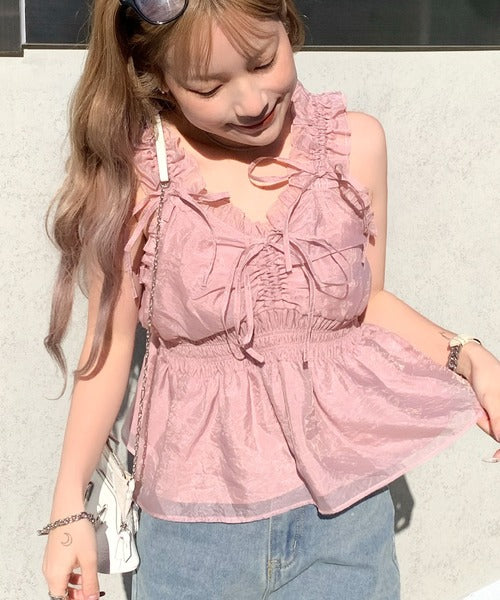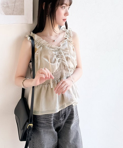 【mily bilet】愛され大人フェミニン。リボン使いフリルオーガンジービスチェキャミソール mi1019072