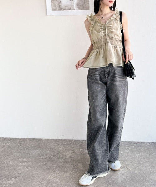 トップスは無地Tやカップ付きインナーと合わせる他、