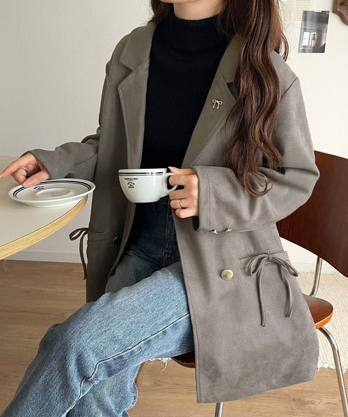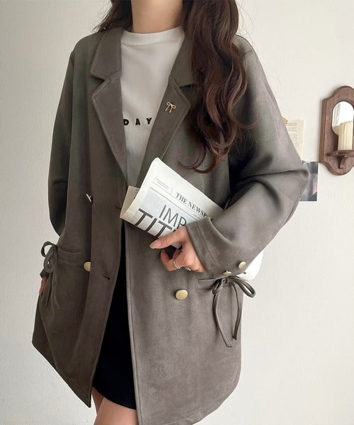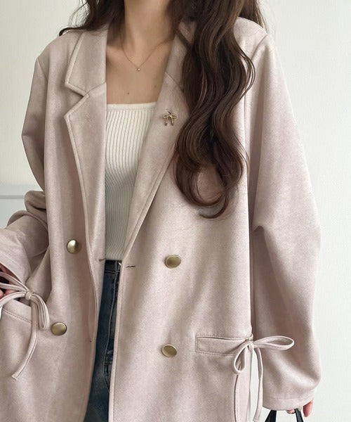 淡色スエード×リボンでフェミニンに決まるテーラードが登場♪