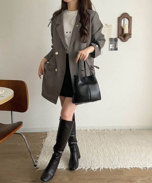 ブローチと金ボタンの高級感が、甘くなりすぎず大人っぽいアクセントに♪