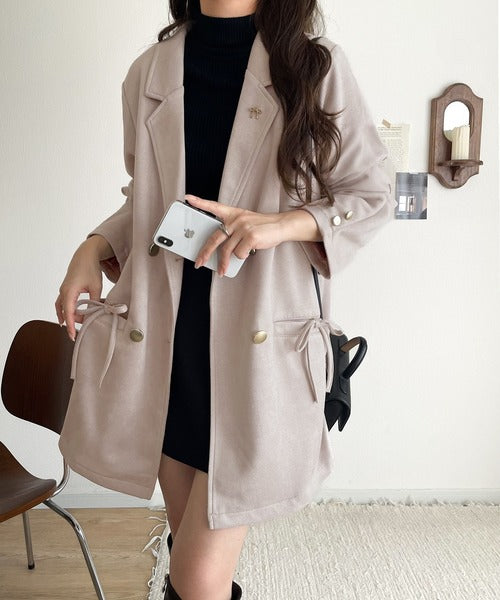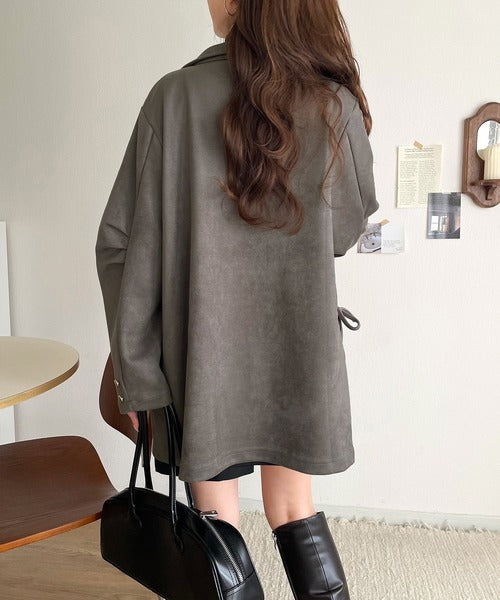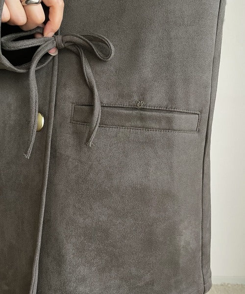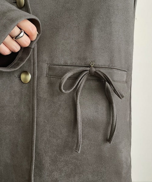 【mily bilet】大人ガーリーを着こなす。スエード調素材リボン使いテーラードジャケット mi1019114