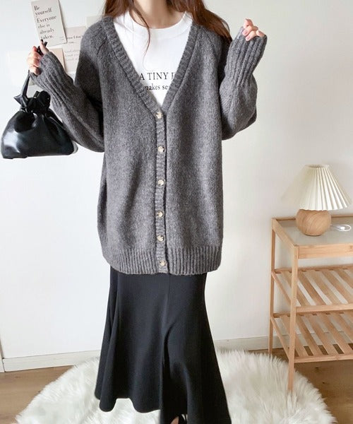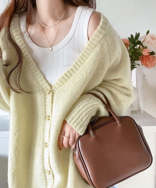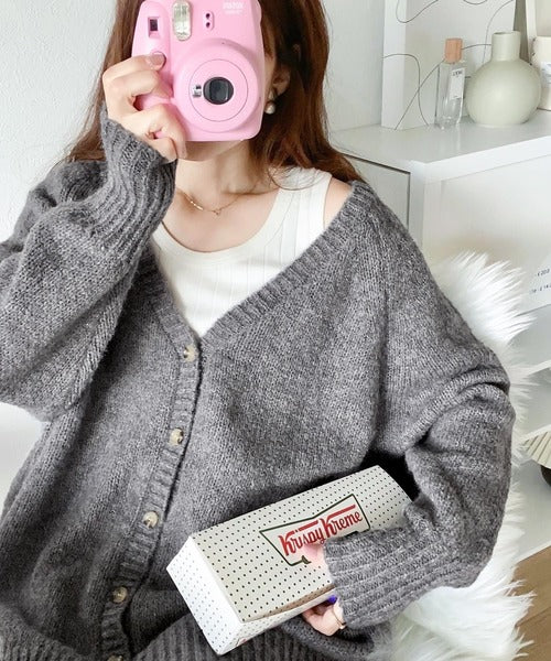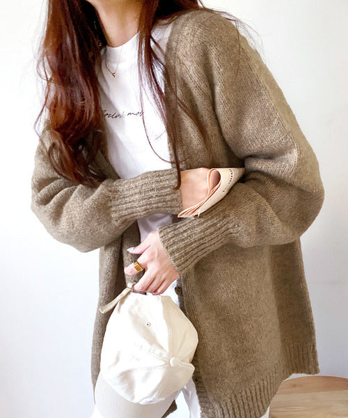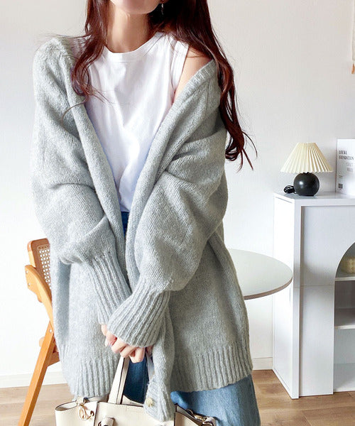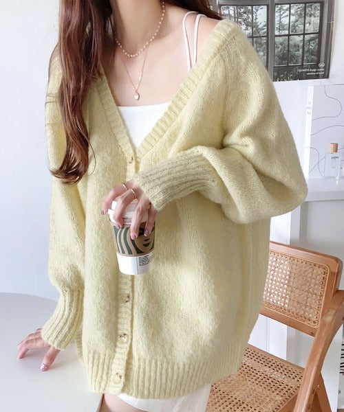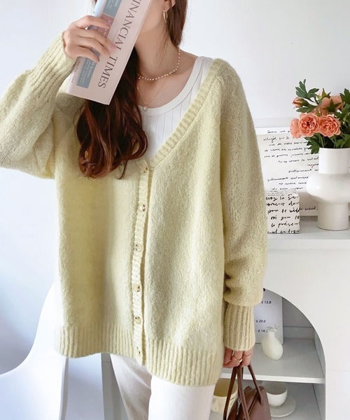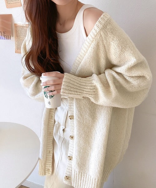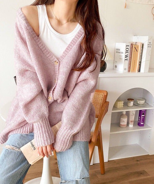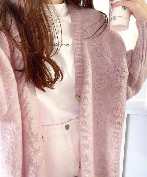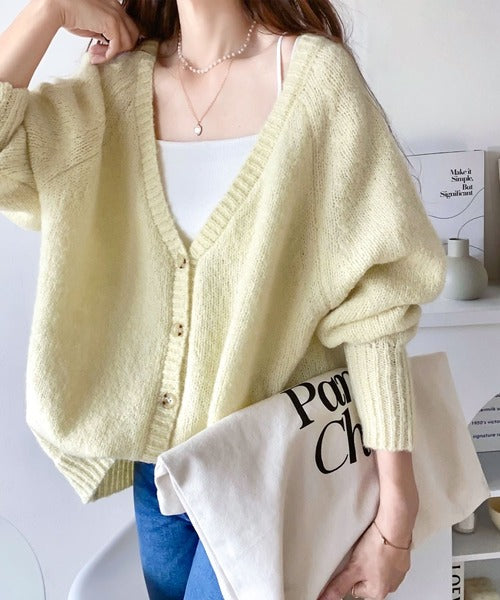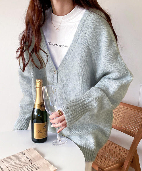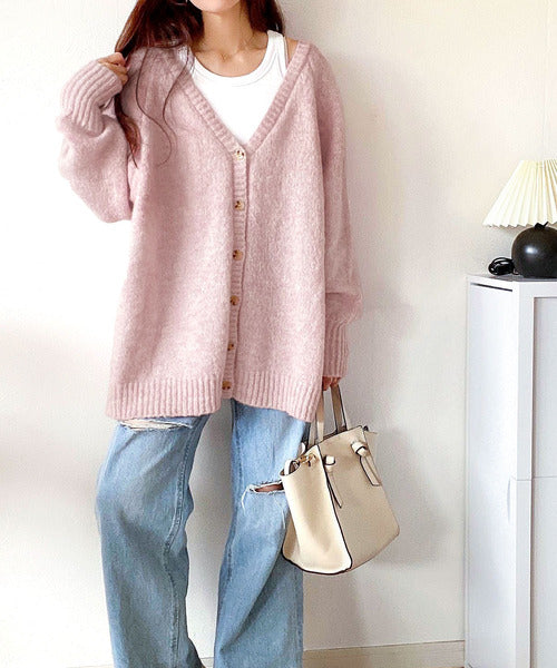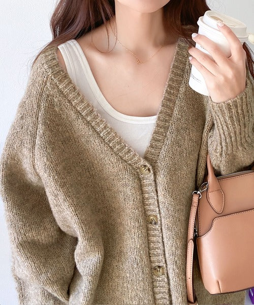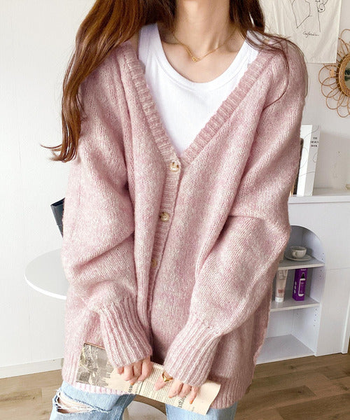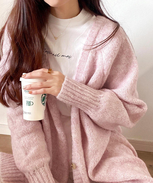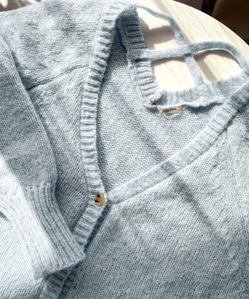 【mily bilet】淡色にきゅんきゅん。バッククロスメランジVネックニットカーディガン mi1029010