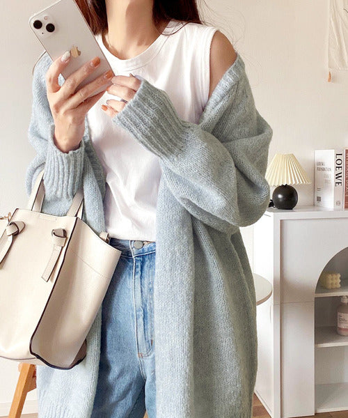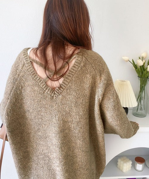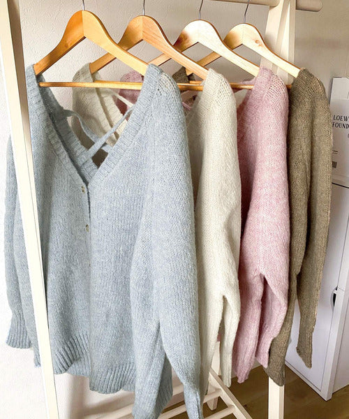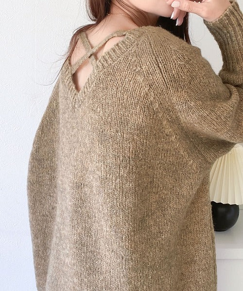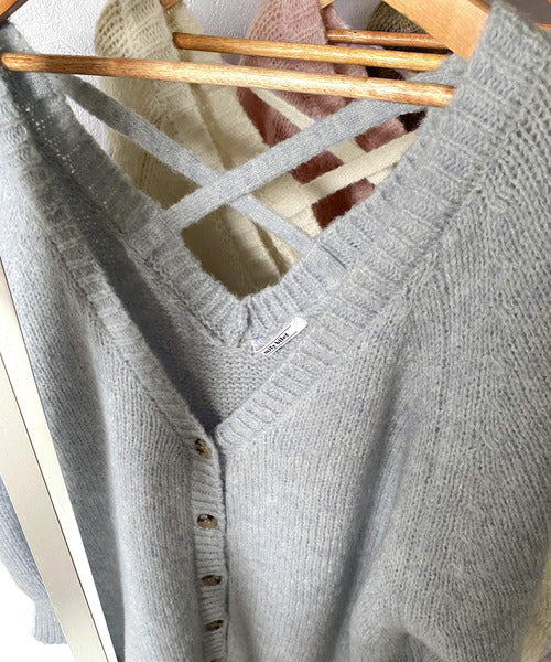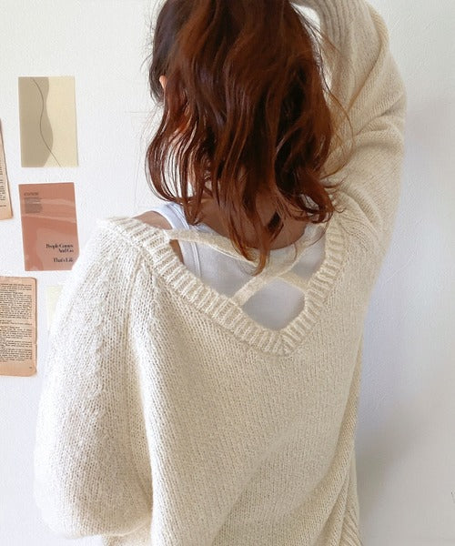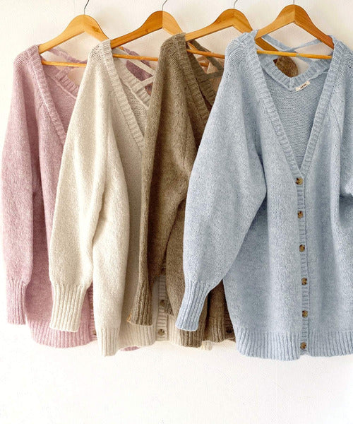 バックのクロスデザインが目を惹く、抜け感抜群のニットカーディガン。