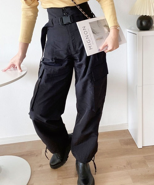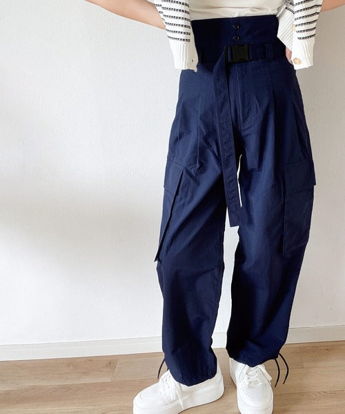 【mily bilet】大人のお洒落カーゴ。ハイウエストベルト付きパンツ mi1029020
