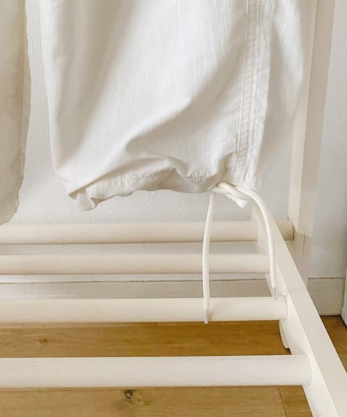 裾のドロストで絞ったり、ベルトも取り外し可能なので気分でスタイルを変えられます。