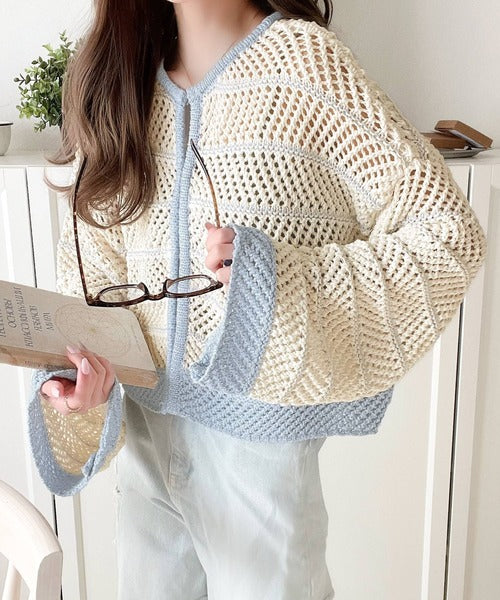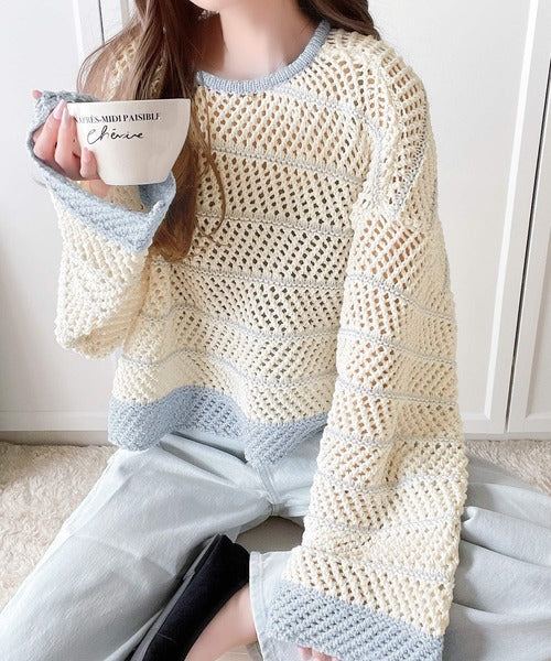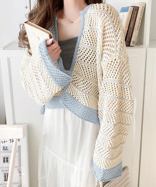 ざっくり編まれたメッシュ編みが涼しげなデザインで、