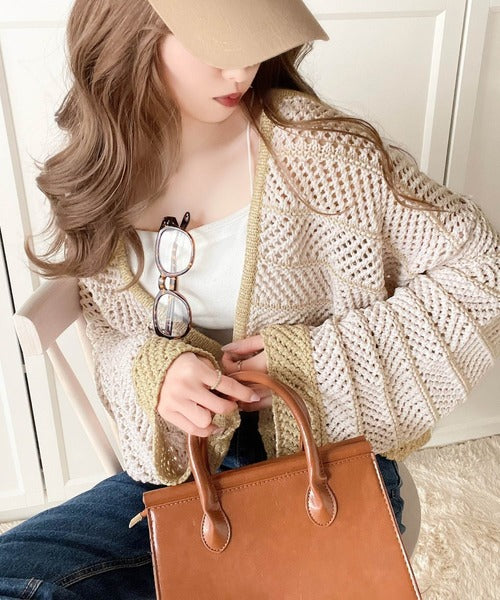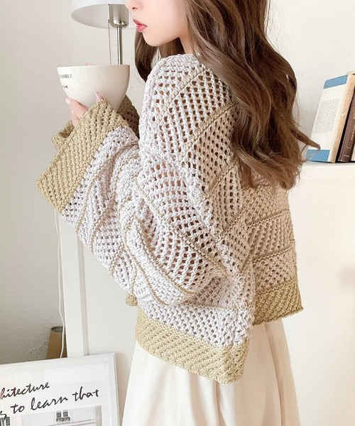 【mily bilet】ガーリーな抜け感!ラメメッシュ編みクロップド前後2WAYカーディガン mi1029041