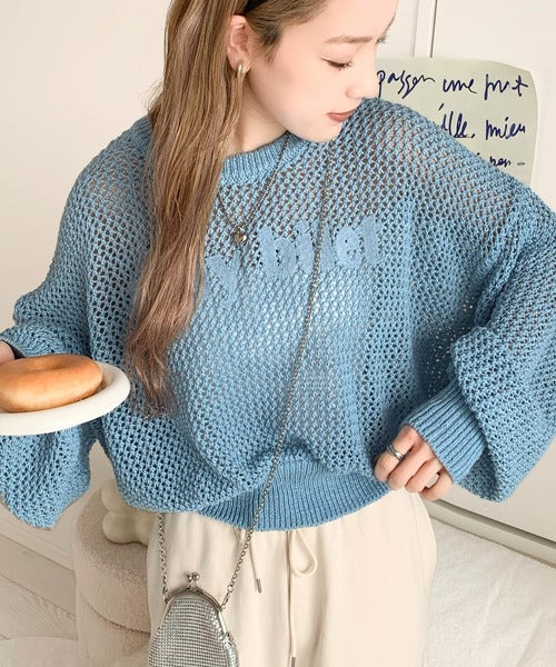 【mily bilet】シーズンムードが一気にUP!胸刺繍メッシュニットプルオーバー mi1029044
