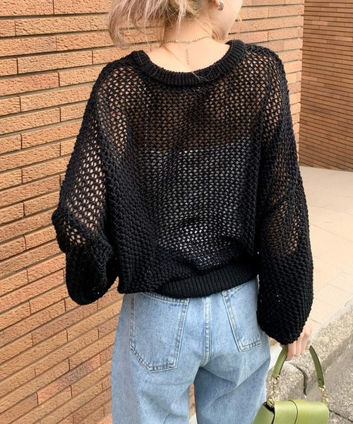 ・程よい透け感の1枚で着映えるメッシュニット