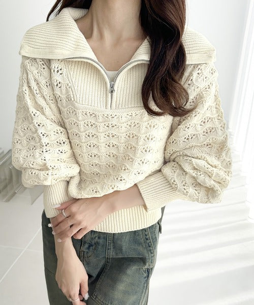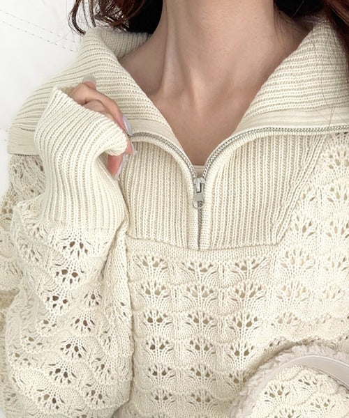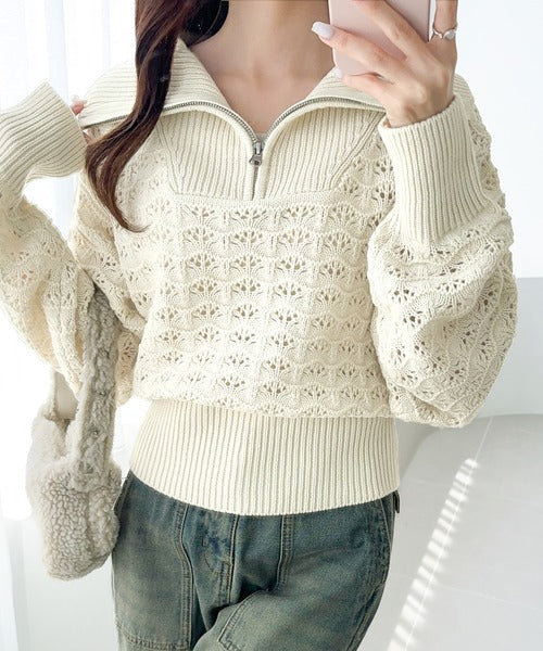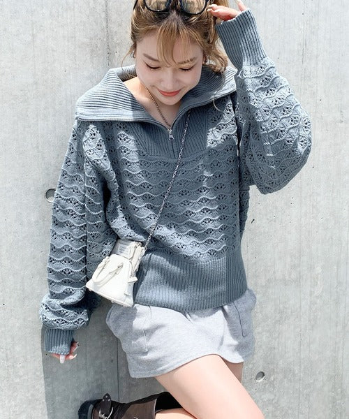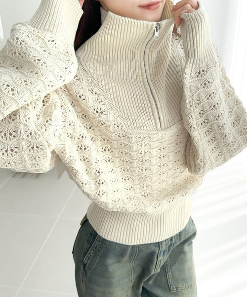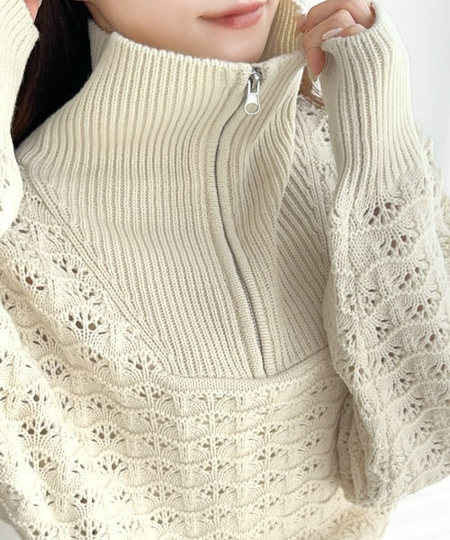 【mily bilet】カジュアルだけど可愛らしい。柄編みハーフジップニット mi1029064