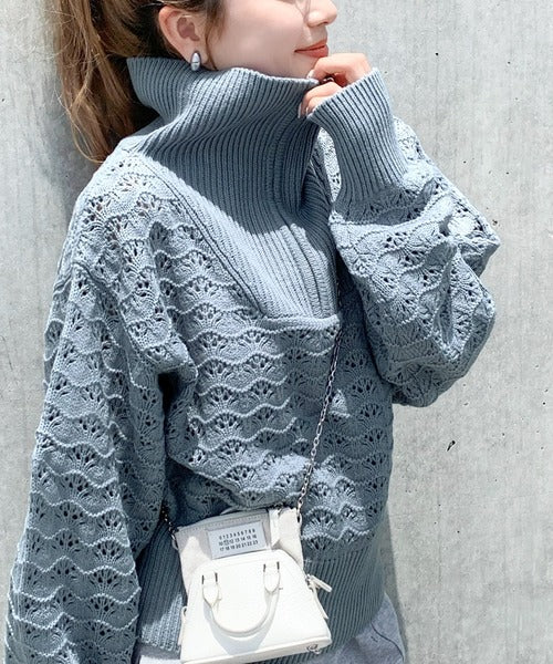 トレンド感溢れるハーフジップニット。