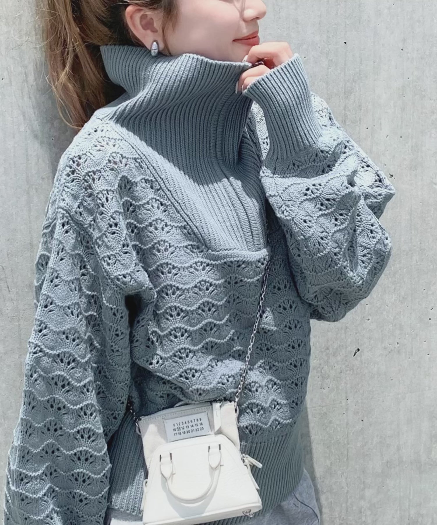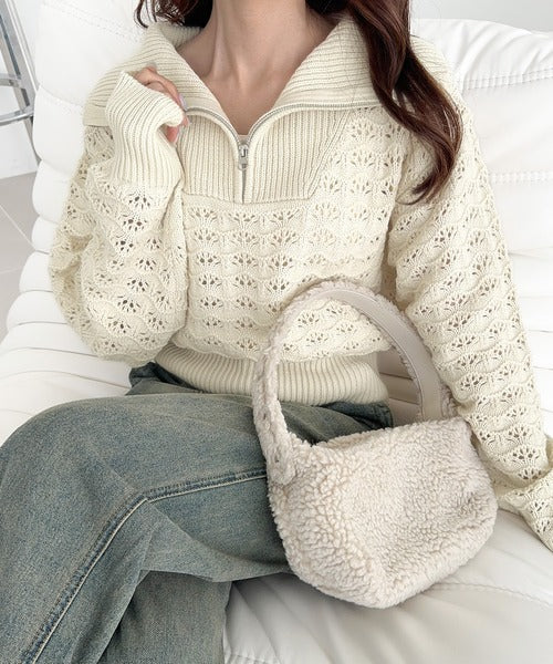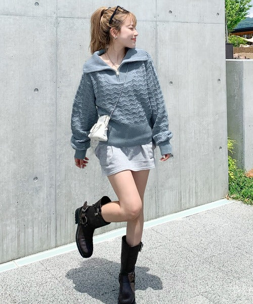 ラフだけど可愛らしく決まるハーフジップニット。