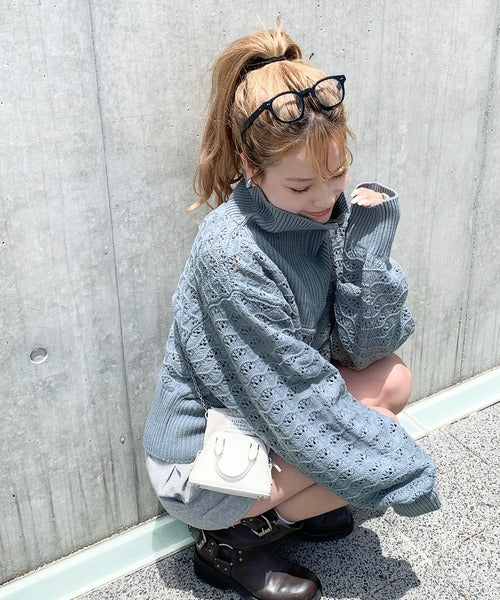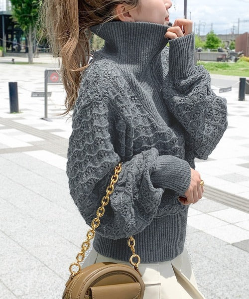 カジュアルになりすぎない可愛らしさのある柄編みニット。