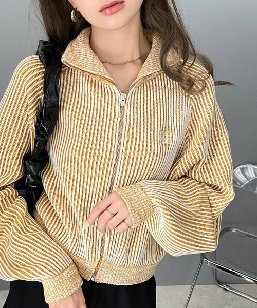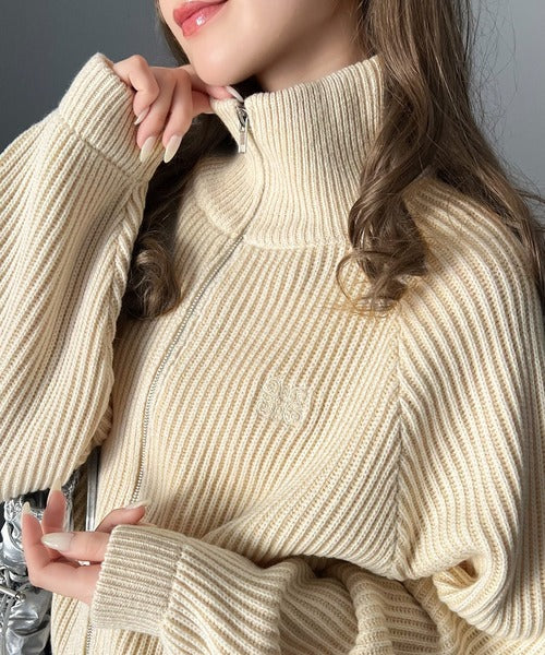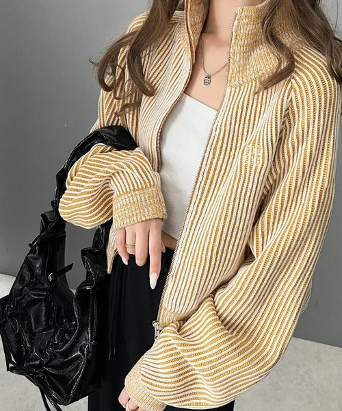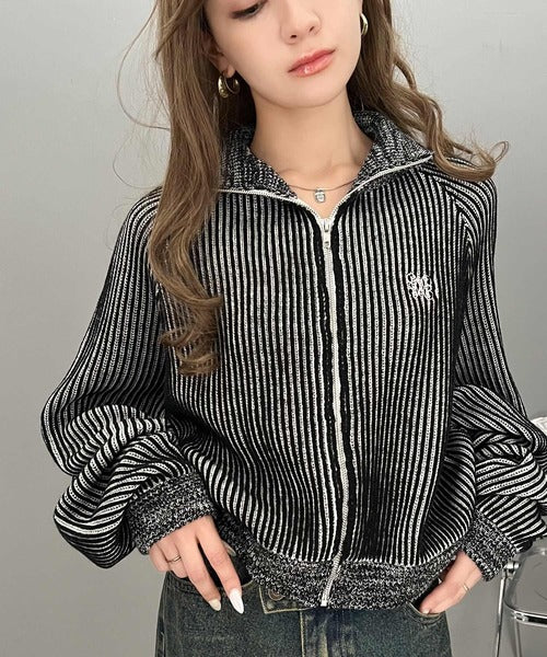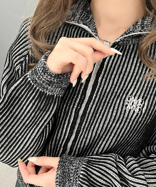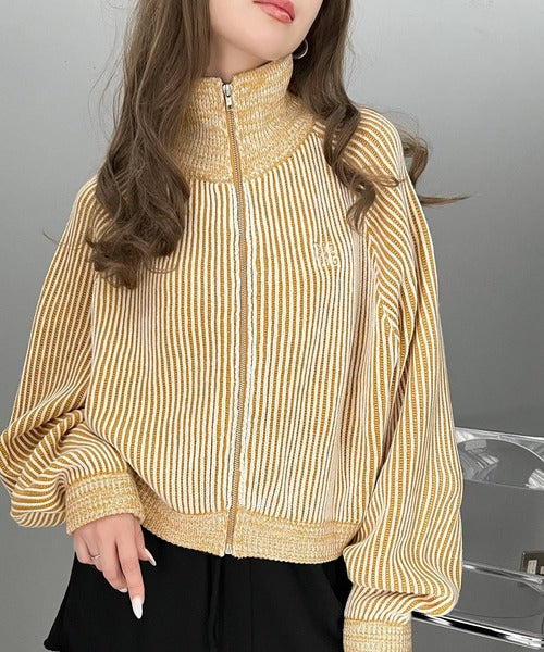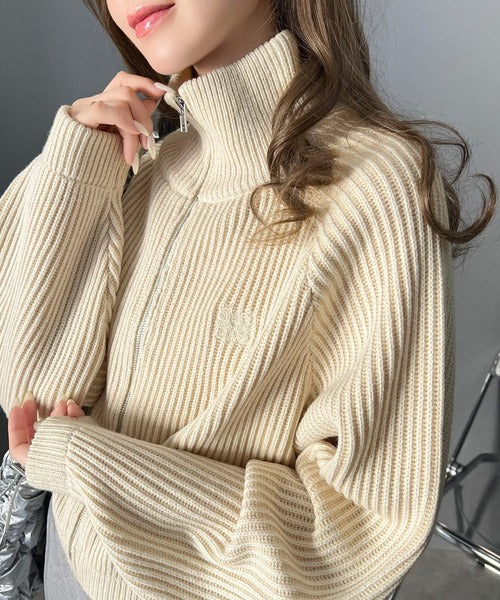 【mily bilet】お洒落な配色でワンランク上の秋冬コーデ。配色畦編み胸刺繍ショート丈ジップカーディガン mi1029066