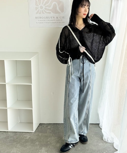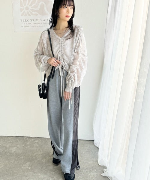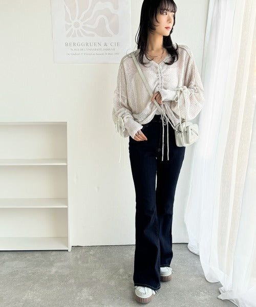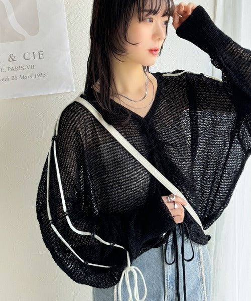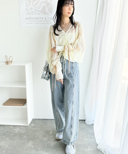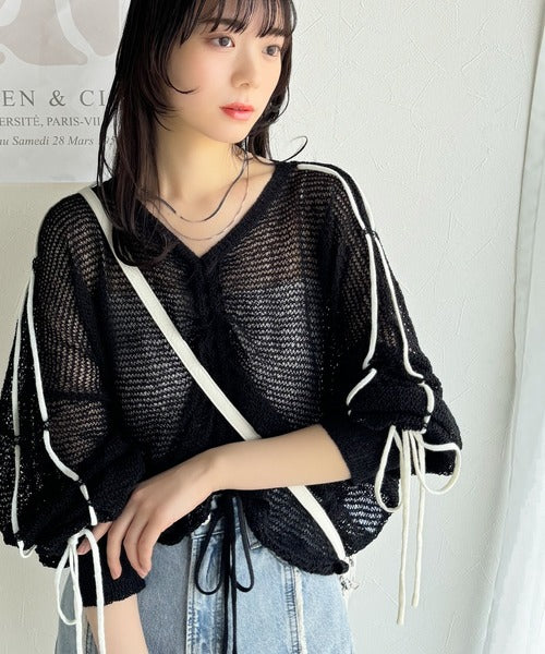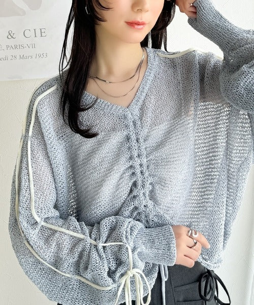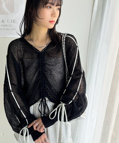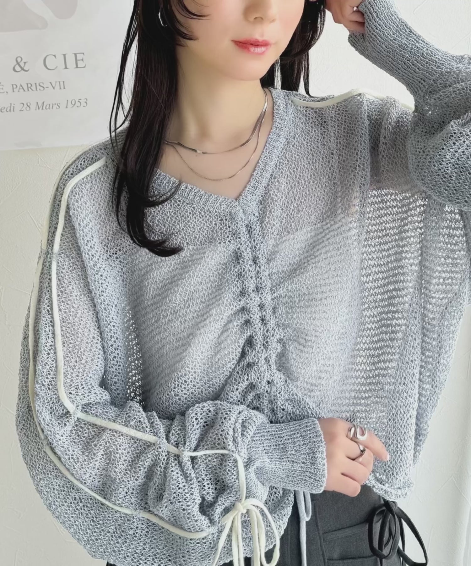 【mily bilet】ルーズな愛らしさで魅了する。透かし編みギャザー仕様リボンプルオーバー(長袖) mi1029102