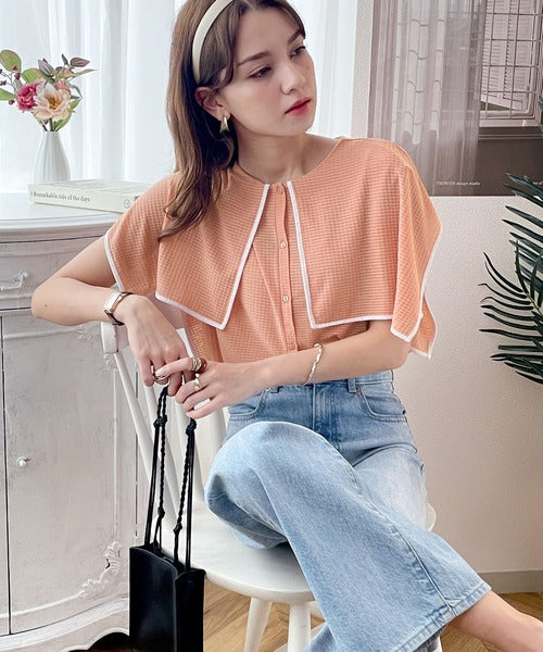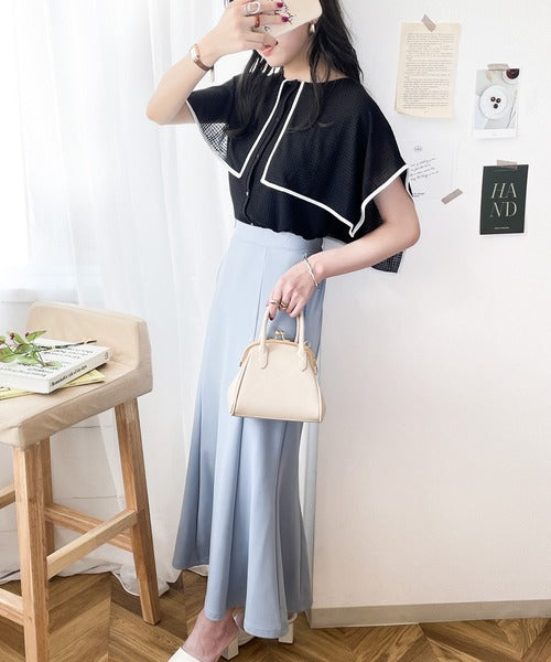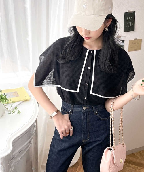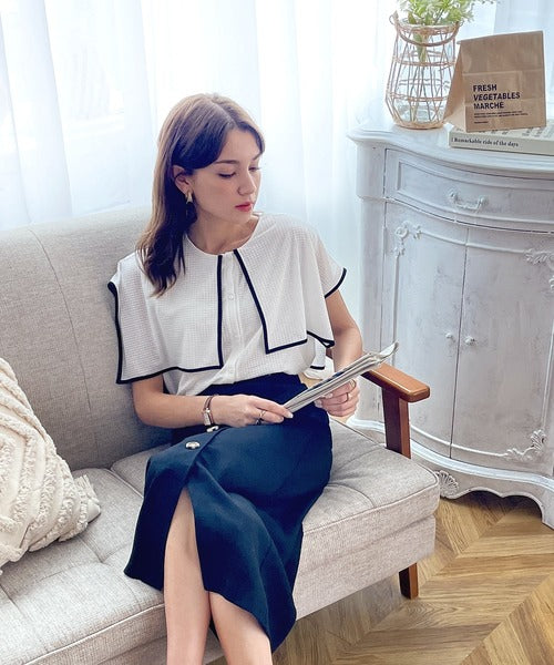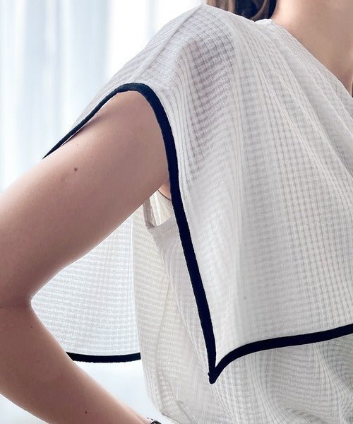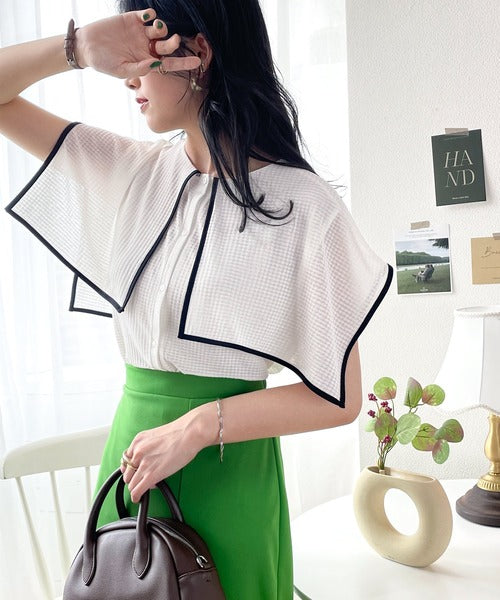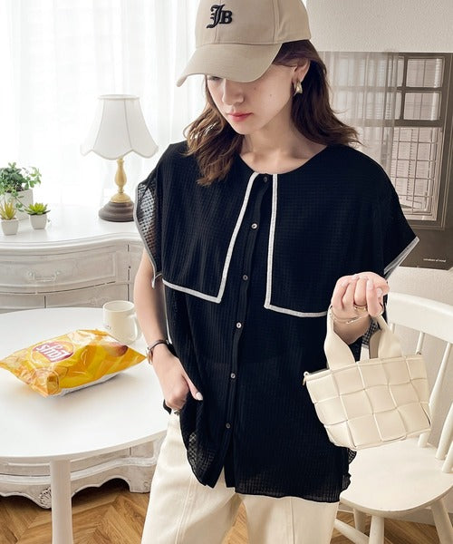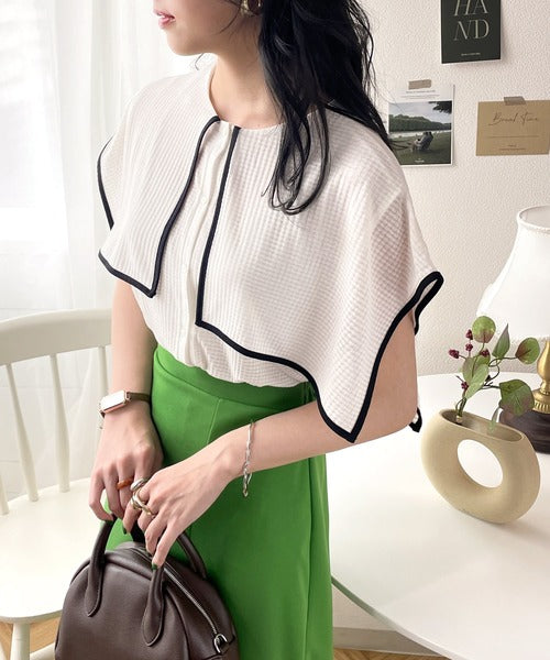 【mily bilet】大人のロマンティック。配色ビッグカラーシアーノースリーブブラウス mi1059002