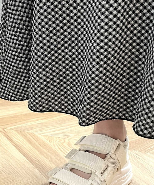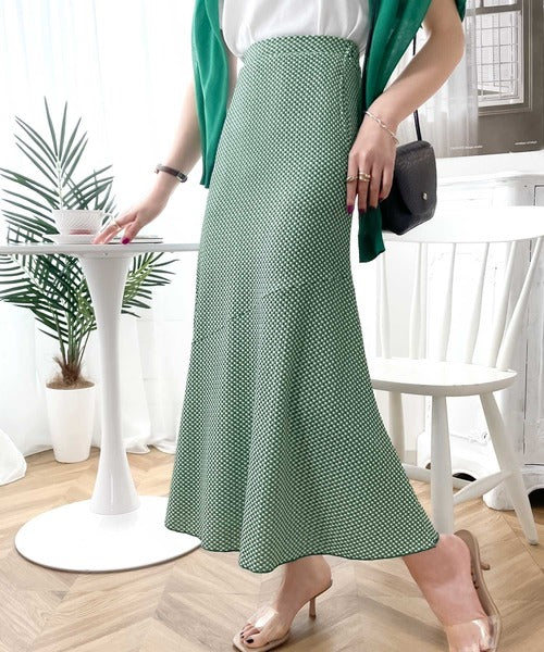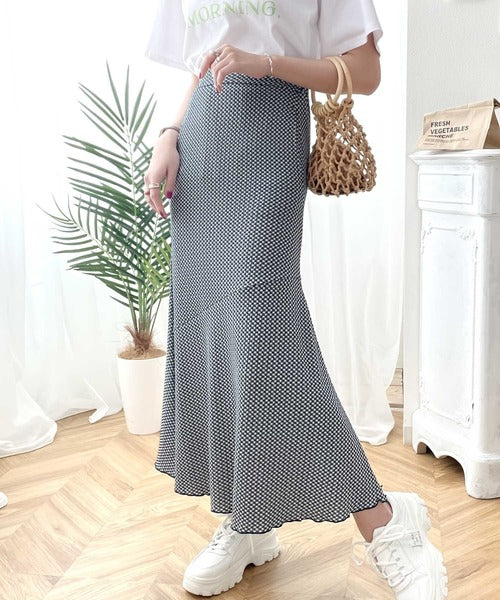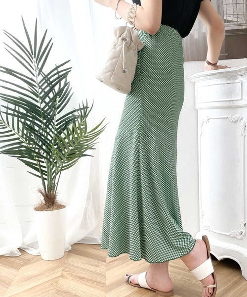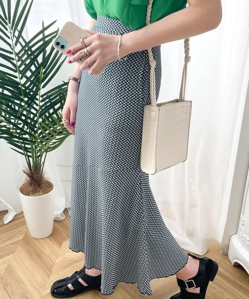 トレンドのギンガムチェック柄のマーメイドスカート。