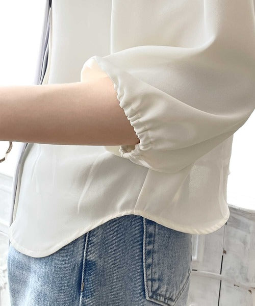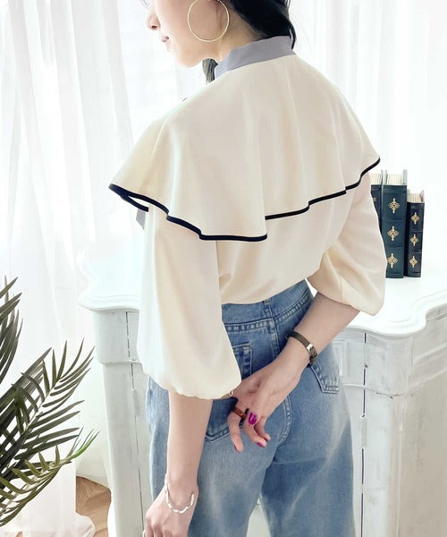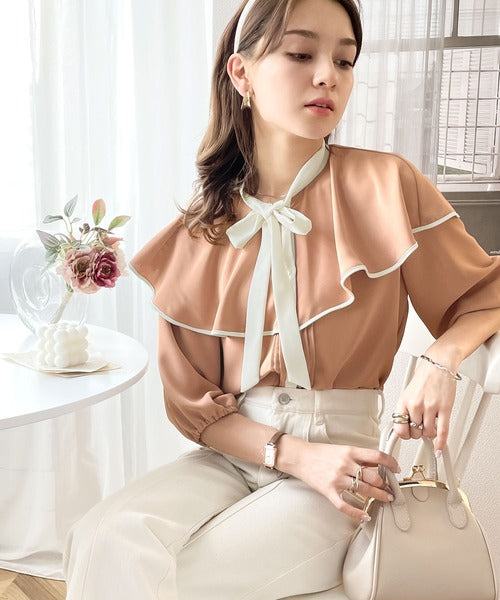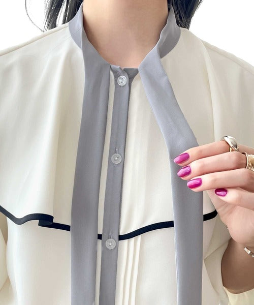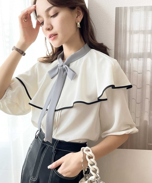 【mily bilet】クラシカルな魅力。ビッグカラー配色ボウタイブラウス mi1079006
