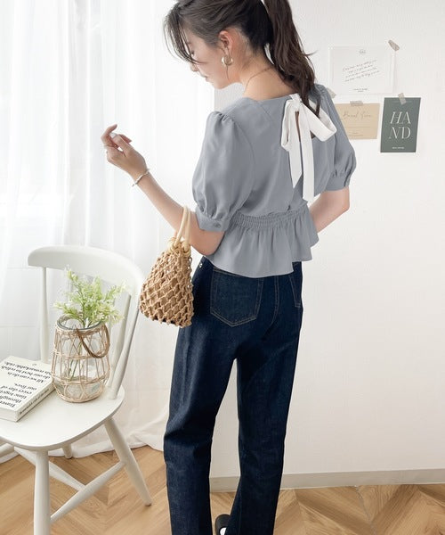 【mily bilet】後ろ姿に一目惚れ。バック配色リボンフリルトップス mi1139008