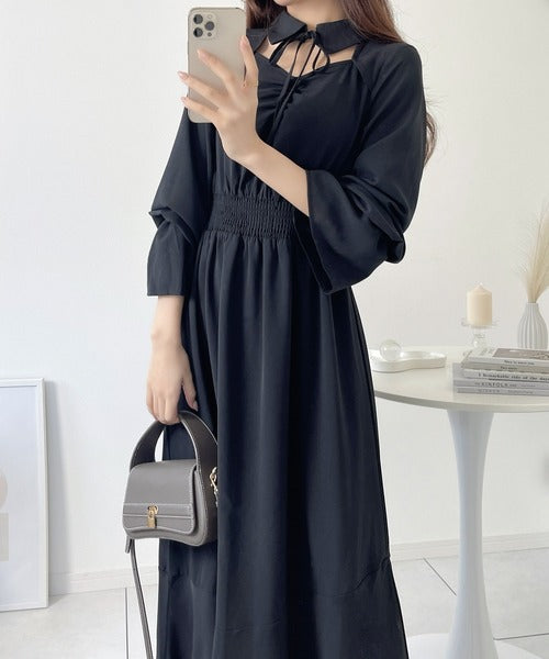【mily bilet】さりげなレディ魅せ。襟付きデコルテマーメイドワンピース mi1139017