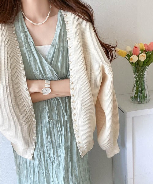 カーディガンと合わせるのもおすすめ。