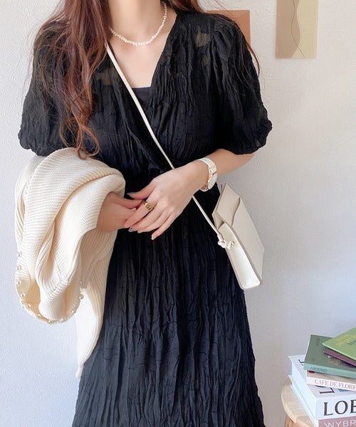 1枚でこなれた雰囲気漂うシアークリンクルワンピース。