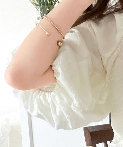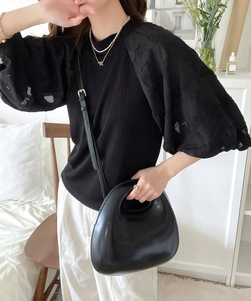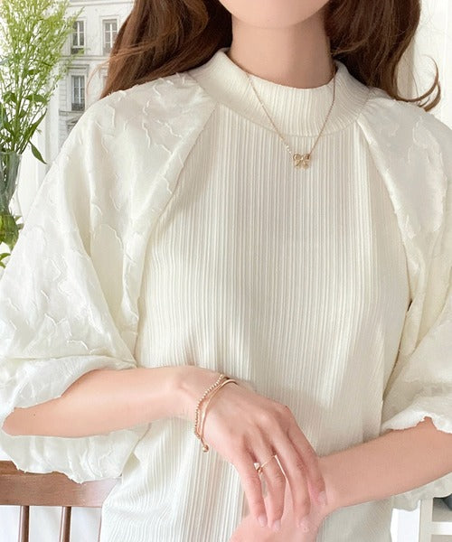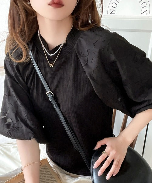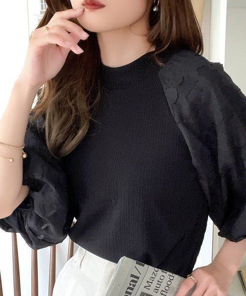 程よいフィット感のボディーにボリュームのあるふんわり袖でメリハリがあり華奢見え効果も抜群◎