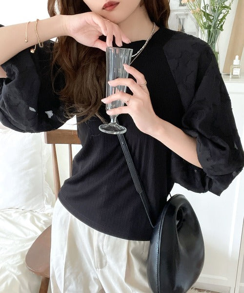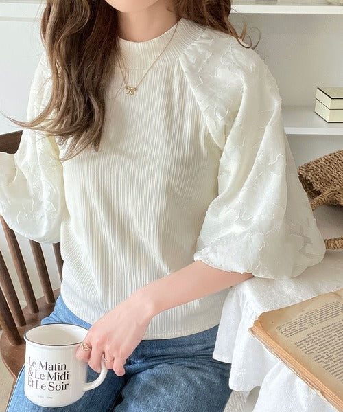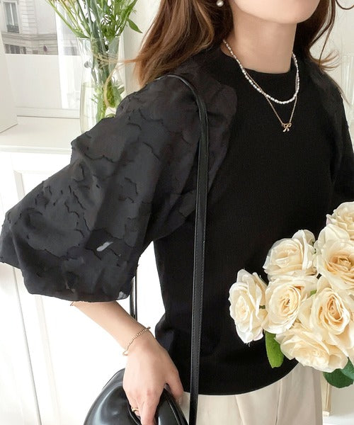 シアーな花柄バルーンスリーブがキャッチーなブラウス。