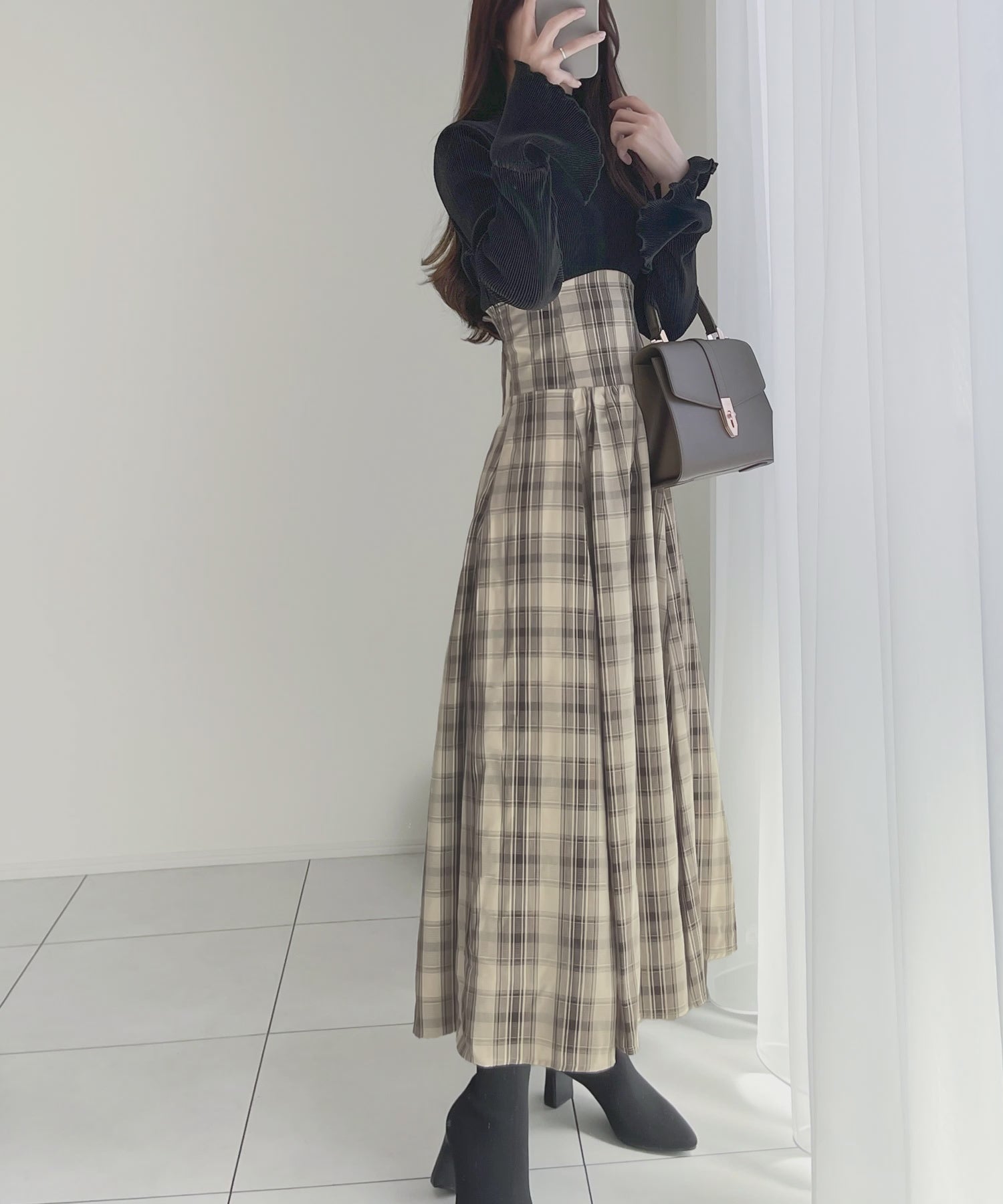 スカートは絶妙なフレアシルエットでメリハリが生まれ、スタイルアップが叶います。