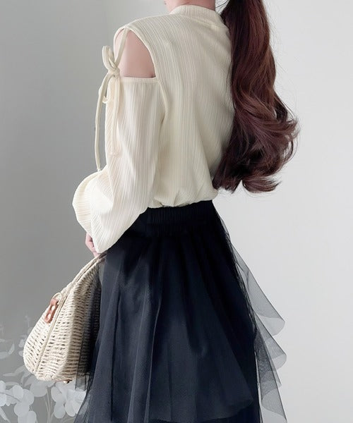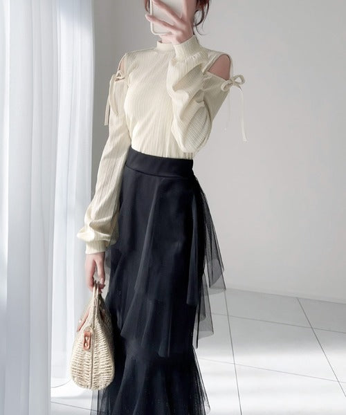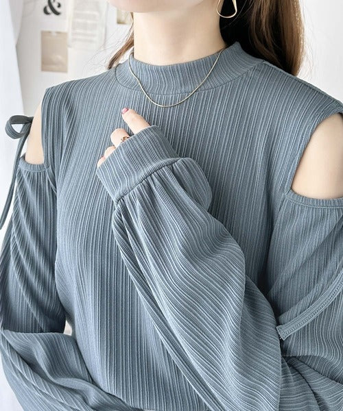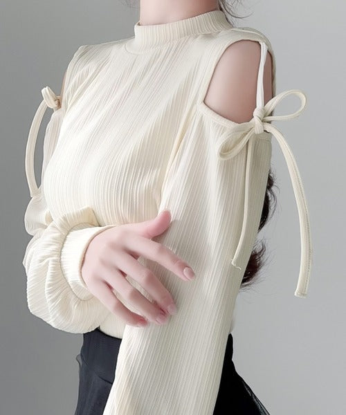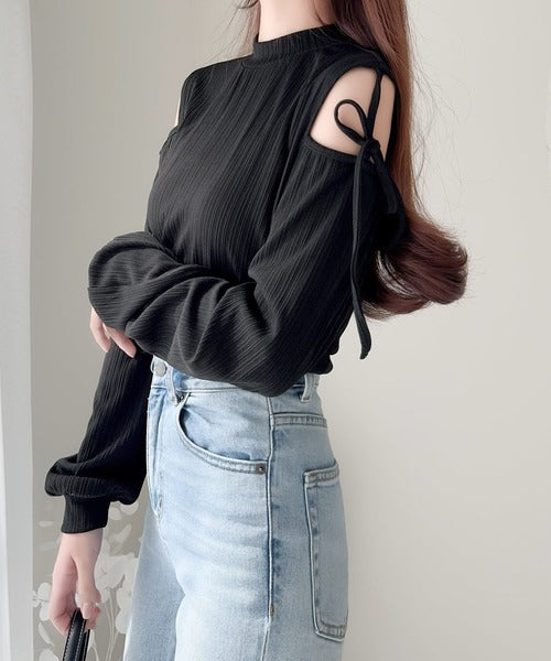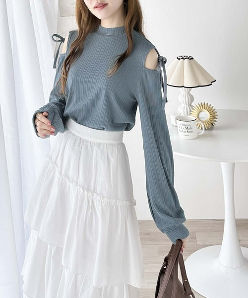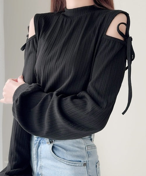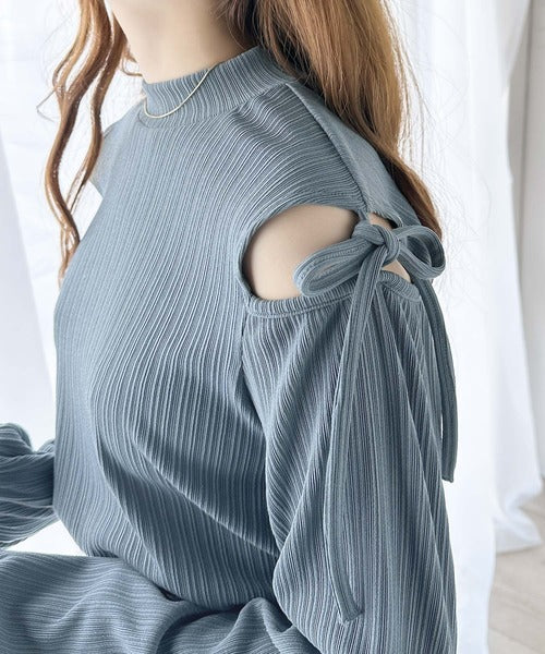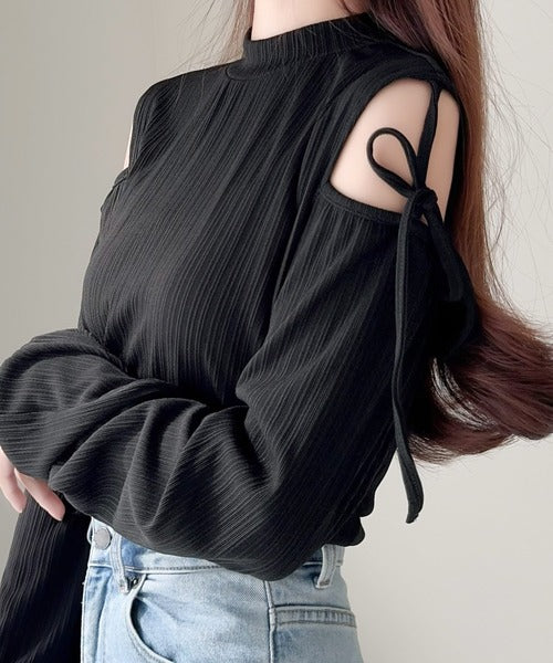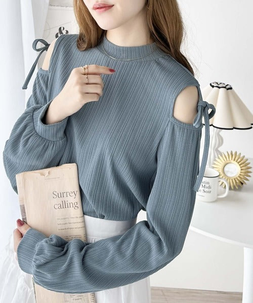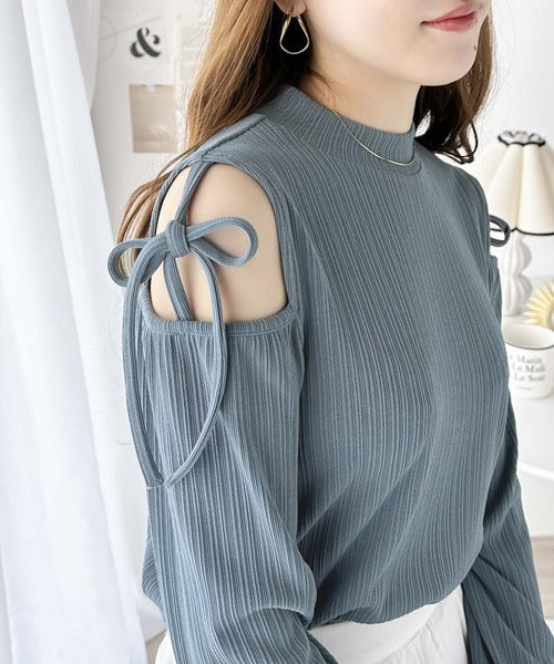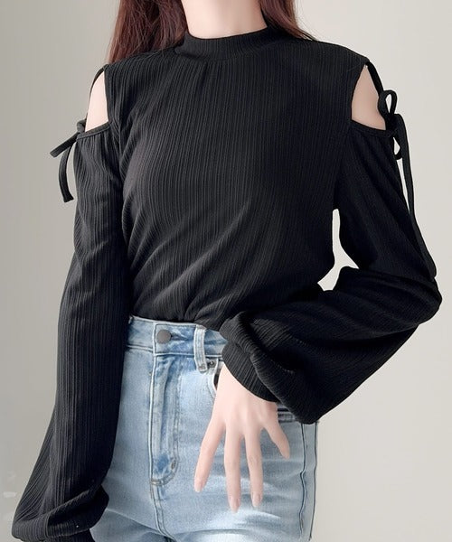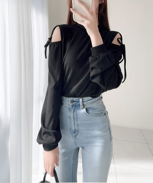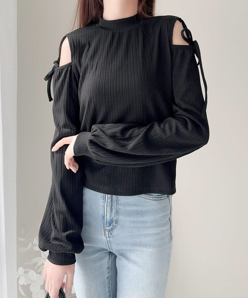 【mily bilet】ヘルシーな肌見せが今っぽい!肩開きリボン使いハイネックカットソー mi1139032