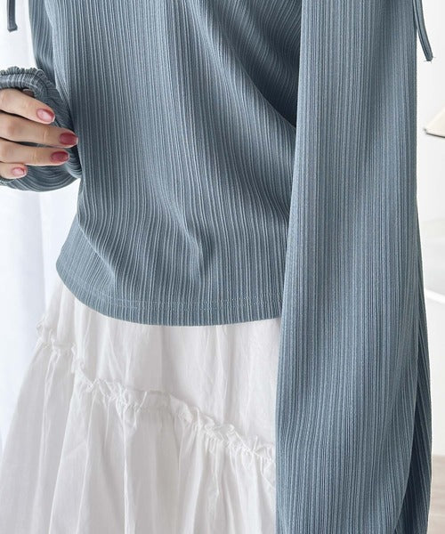 カットされたスリーブ部分にリボンデザインを施しトレンドライクなアクセントをプラスしました。