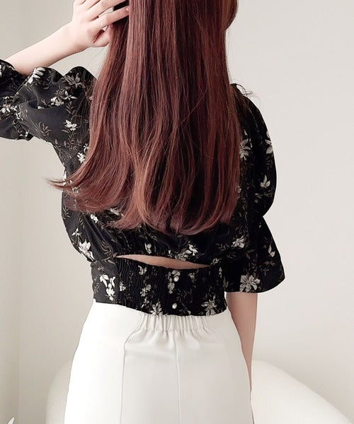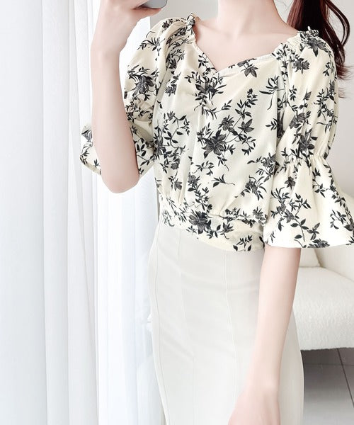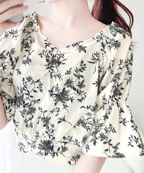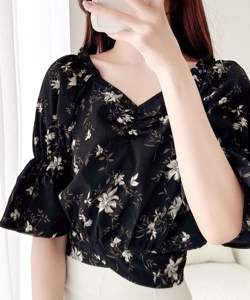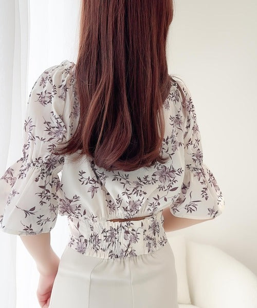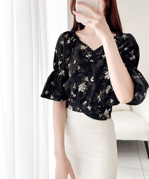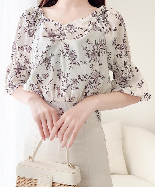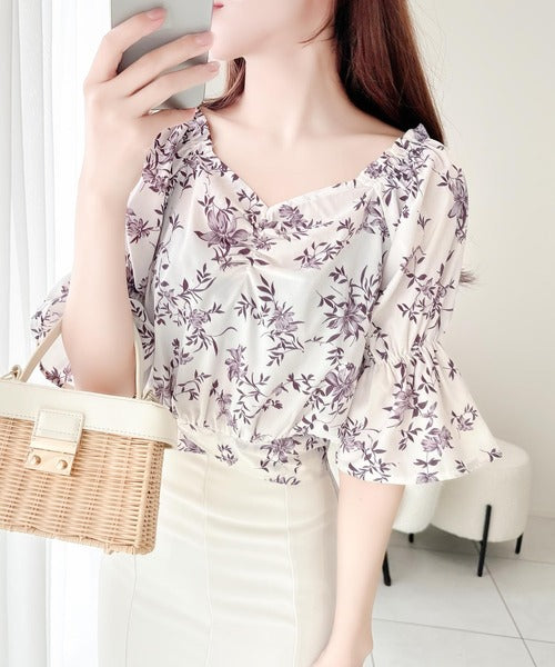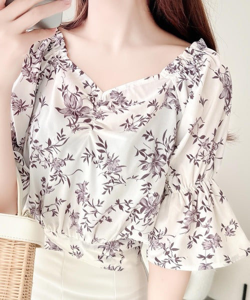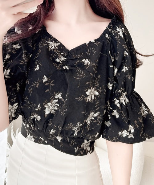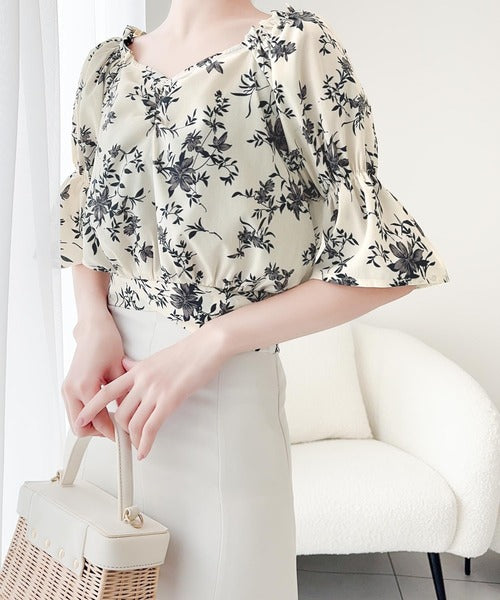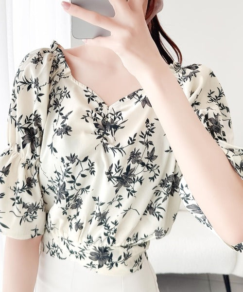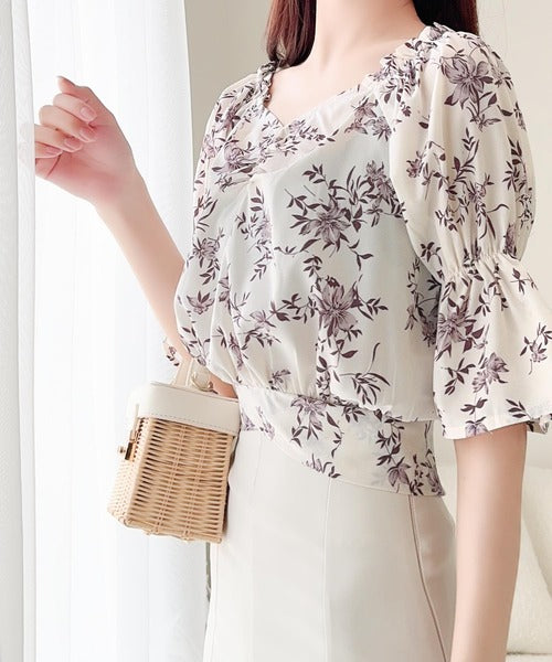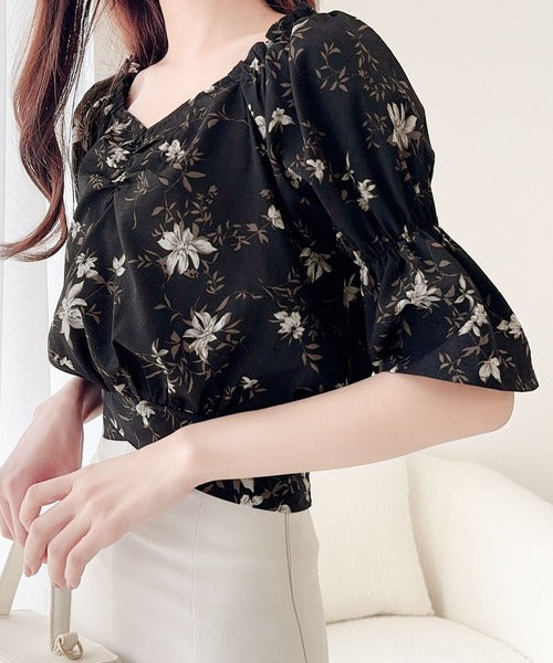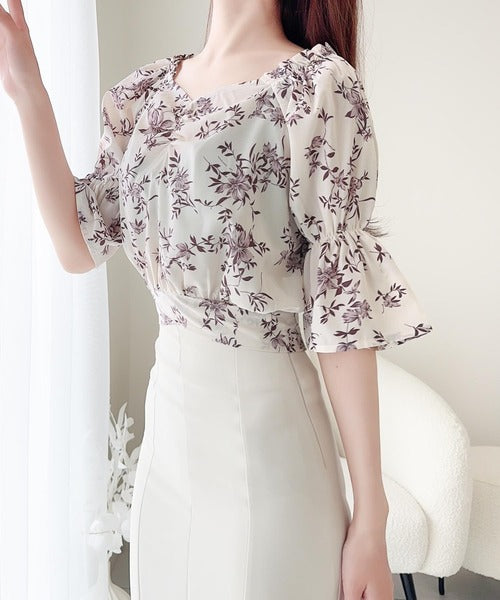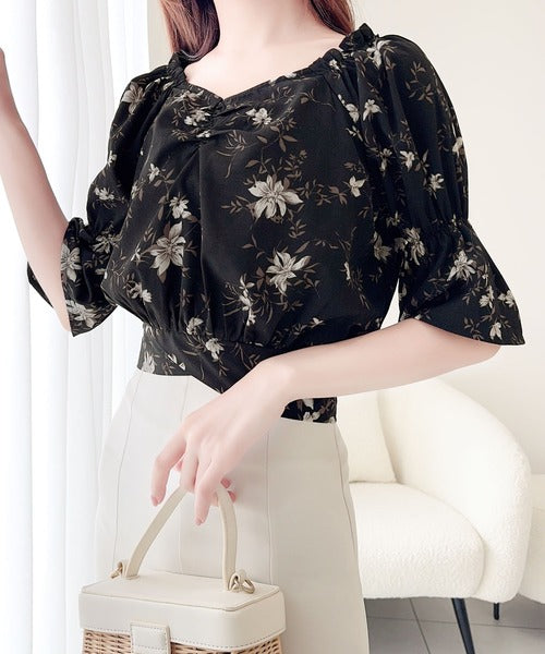 【mily bilet】着るだけで気分華やぐ♪花柄キャンディースリーブブラウス mi1139040